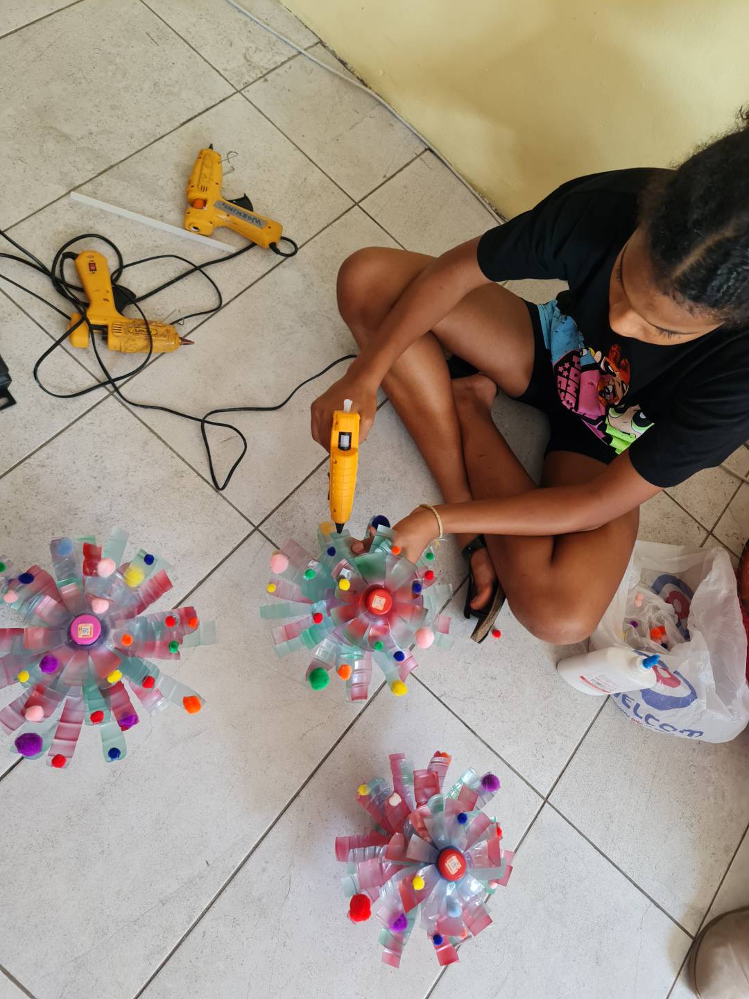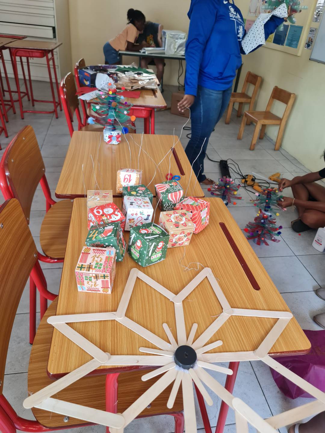 At the same time, a second creative team built small plastic Christmas trees and festive decorations from bamboo sticks. Sustainability, skill, and imagination were at the heart of their work as well.