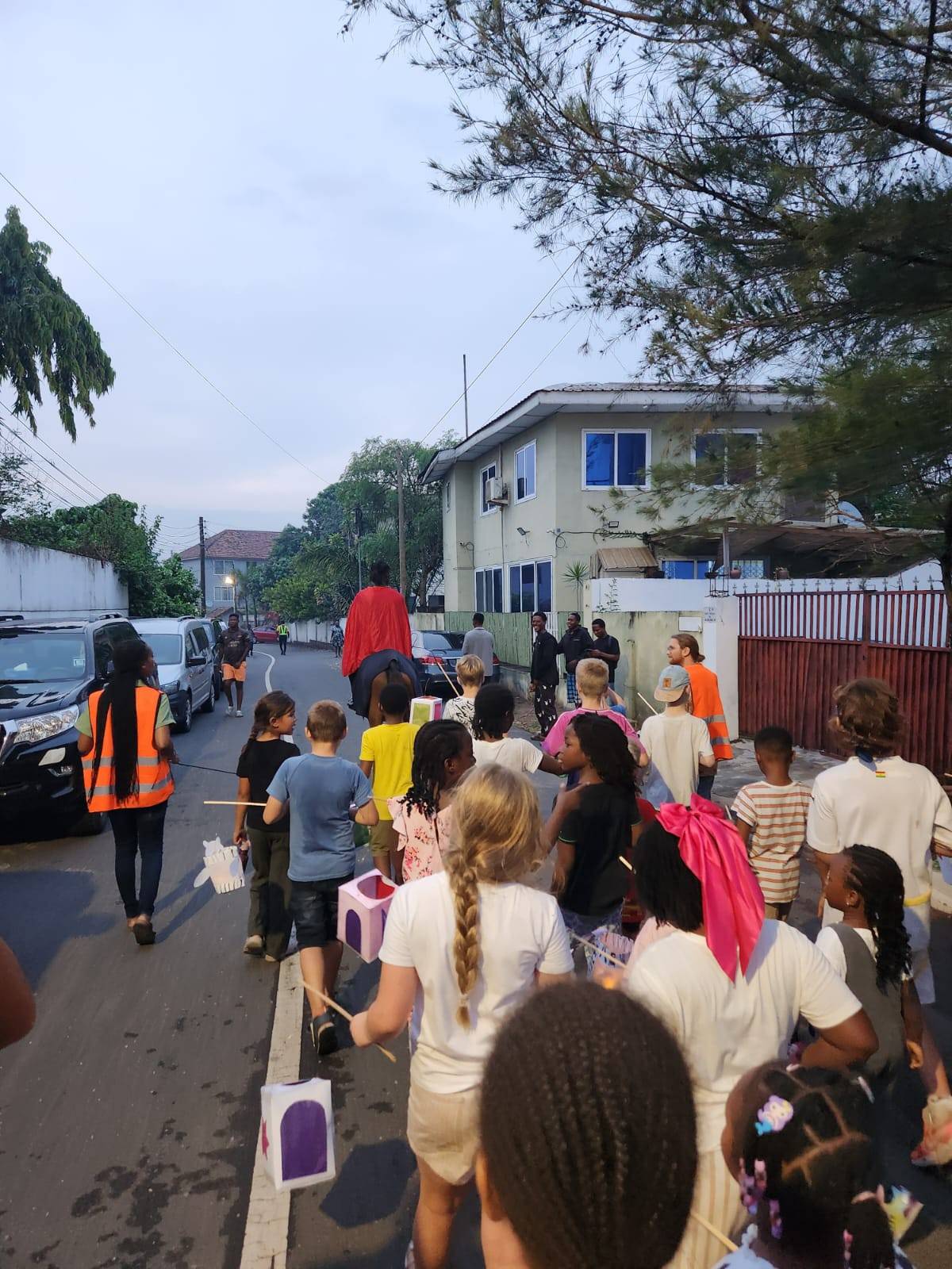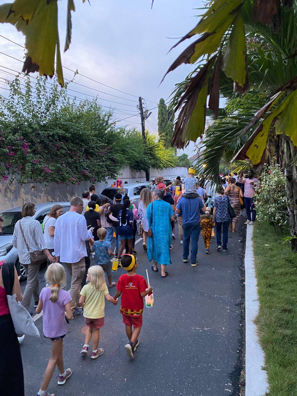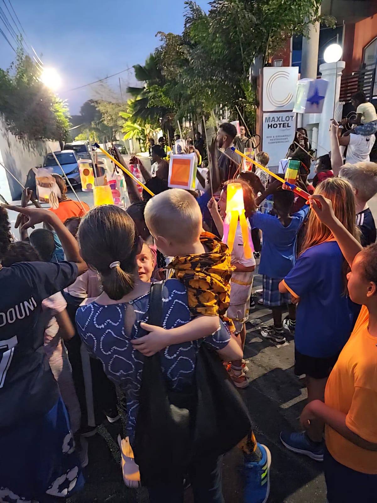 A very special surprise awaited the children at the GISA entrance gate: St. Martin on a brown horse, leading the colourful lantern procession of excited children accompanied by traditional lantern songs.