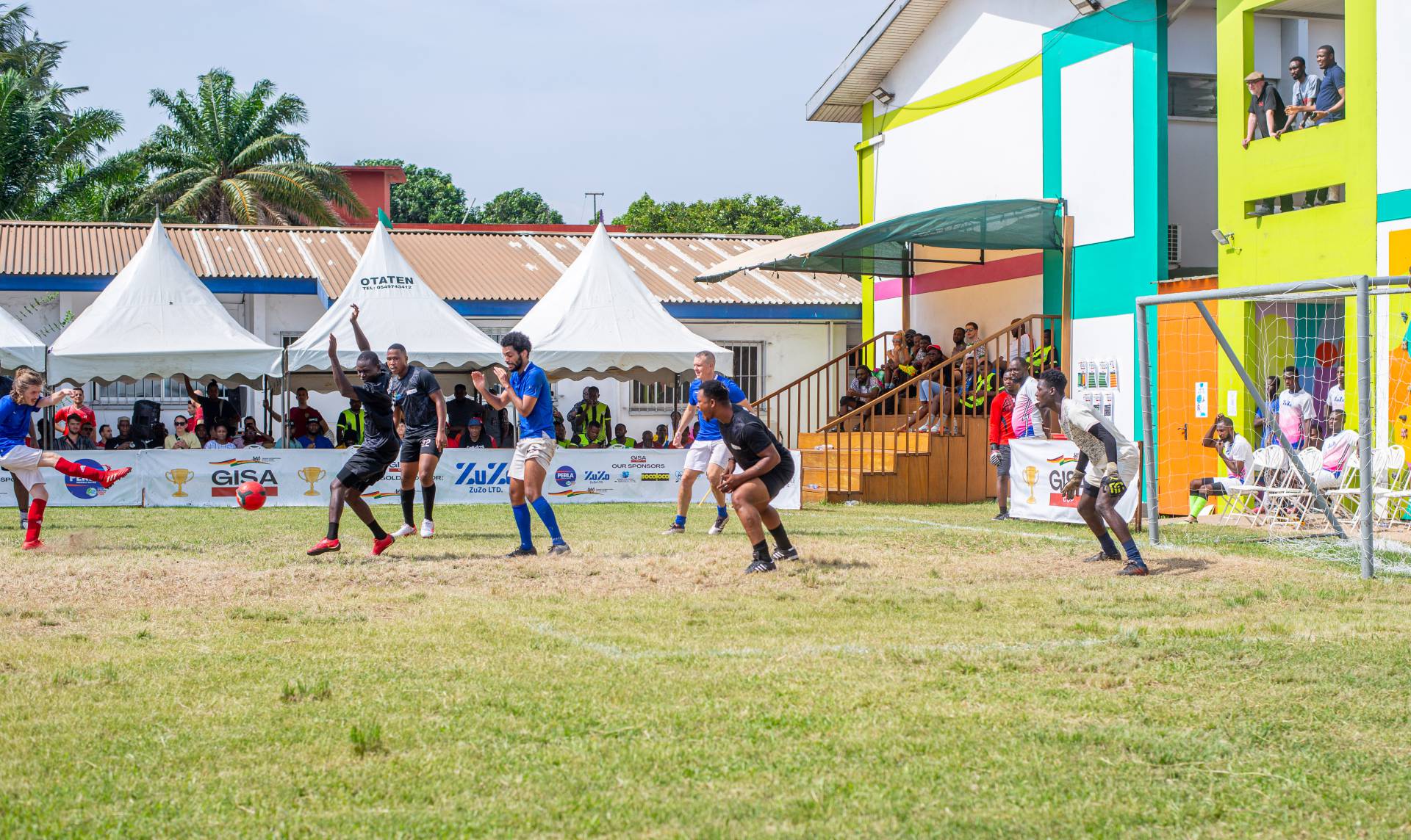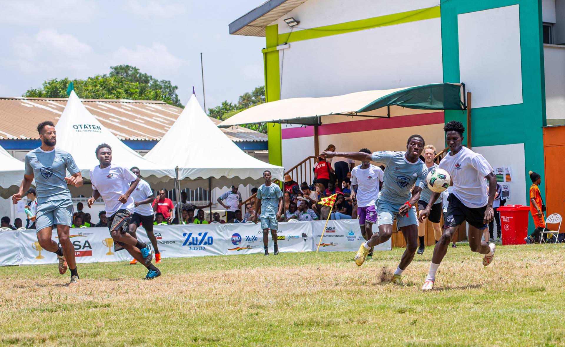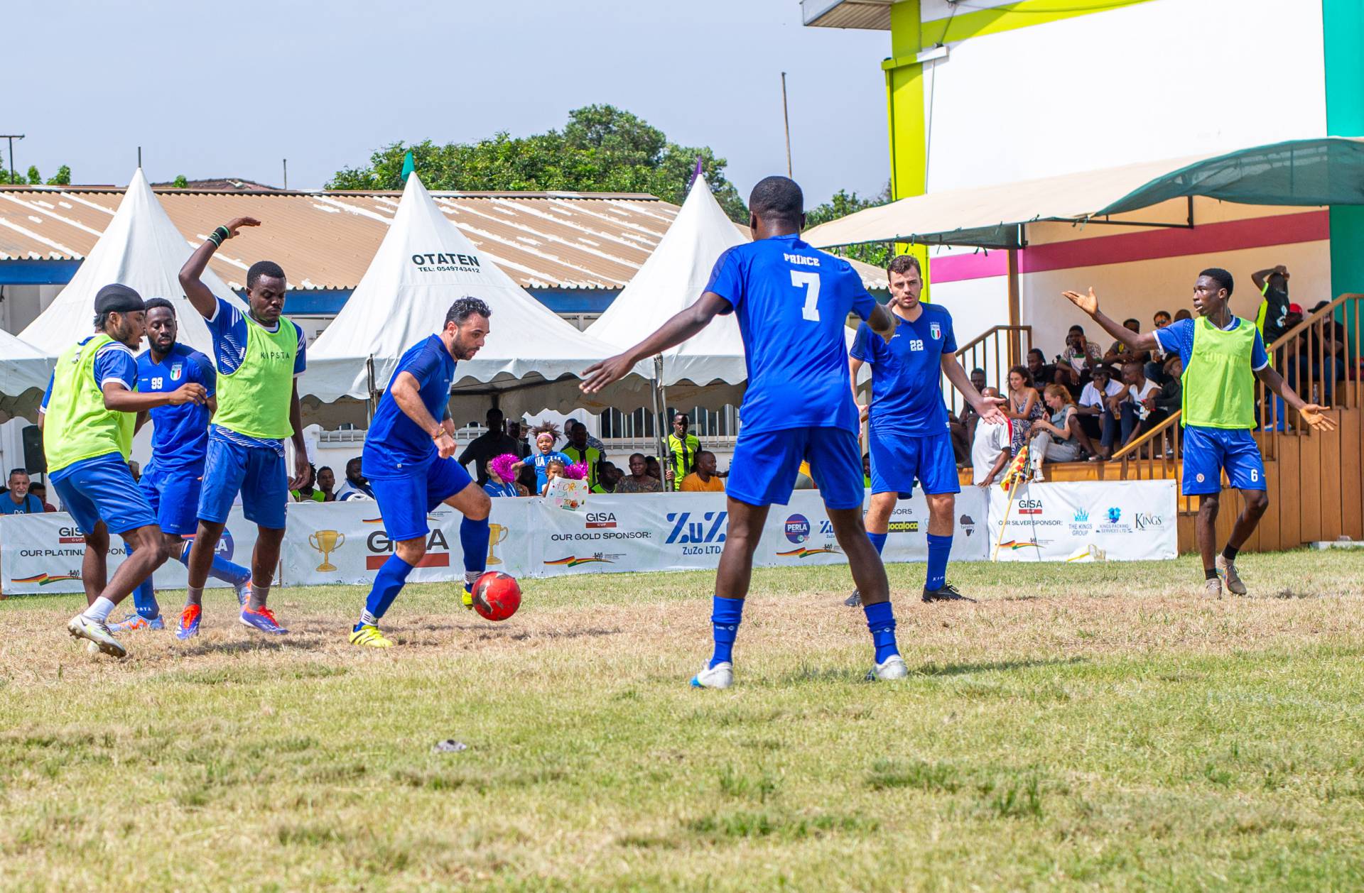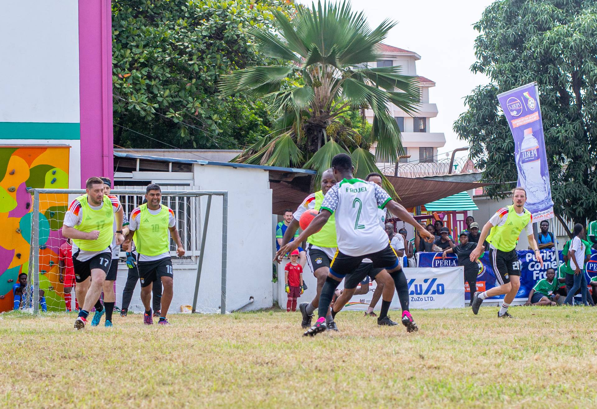 A heartfelt thank you was extended to the generous sponsors of the tournament: Fairafric, HomeMed (also responsible for first aid!), Kings Packaging, Perla (platinum and main sponsor), Socaloca, and ZuZo Ltd. Food and refreshments were plentiful – from classic stadium sausages to Ghanaian Jollof rice, there was something for everyone. The event was also very family-friendly with craft activities from the Universal Wonderful Street Academy and crate climbing from the Ghana Mountaineers.