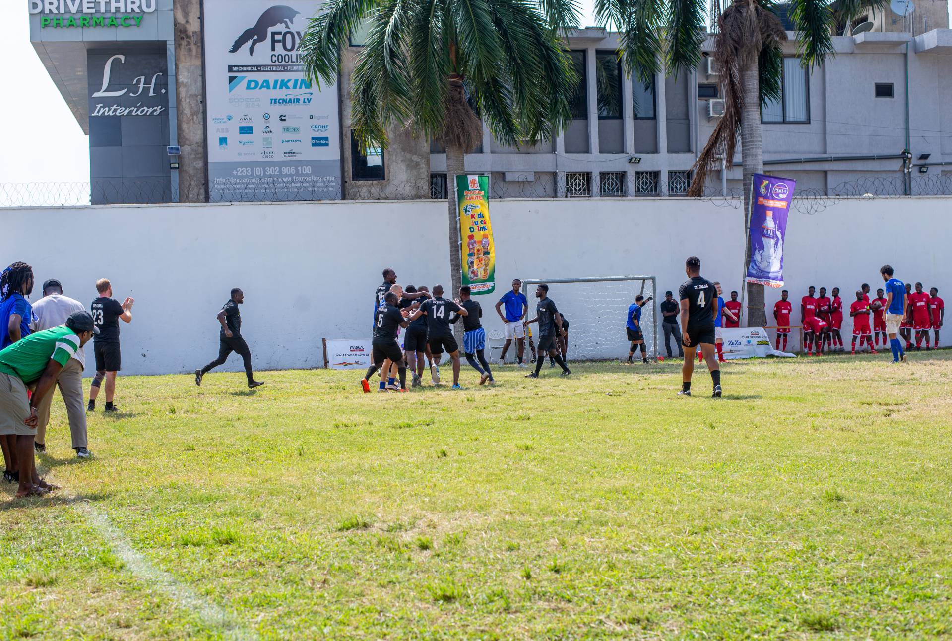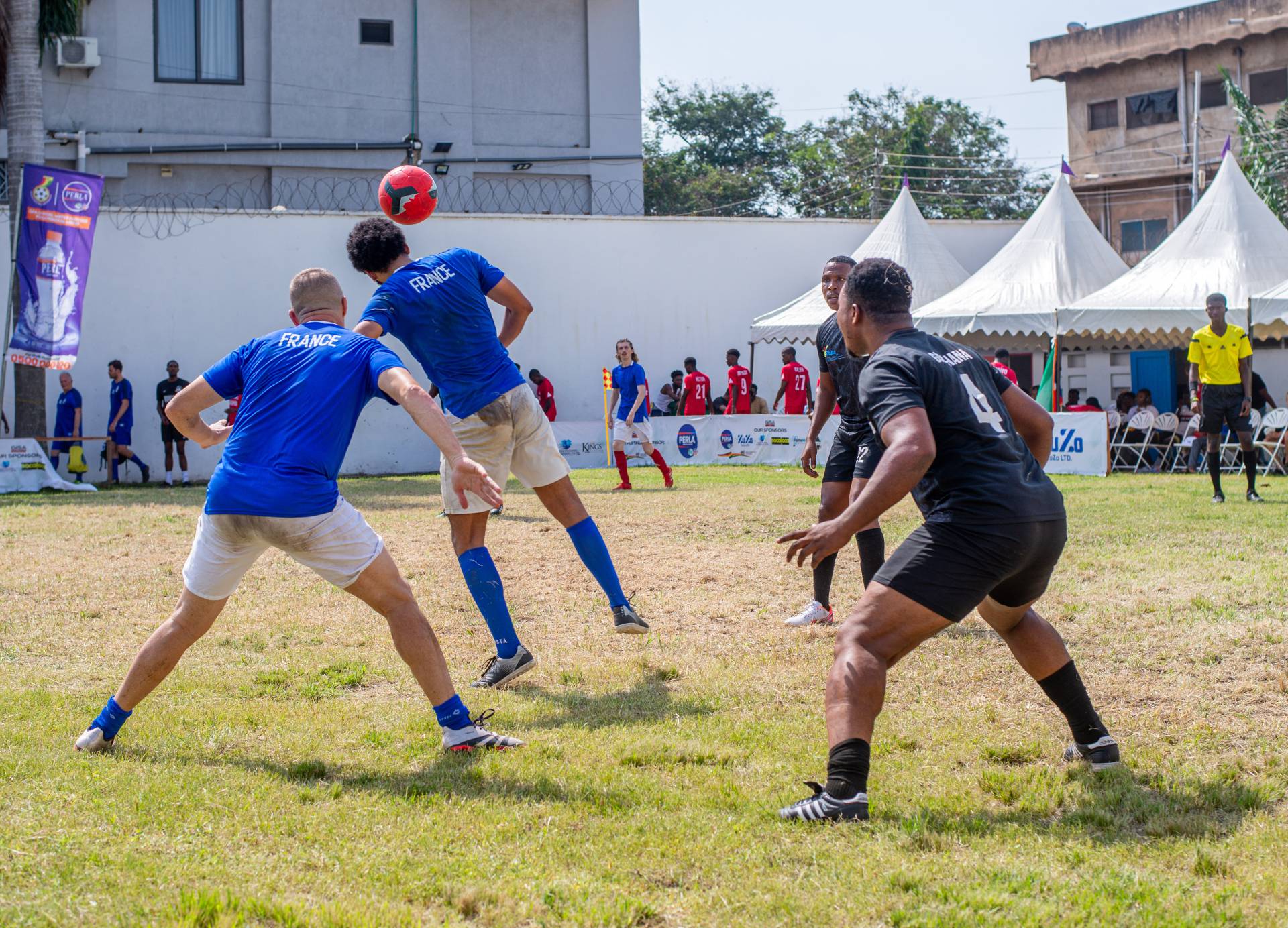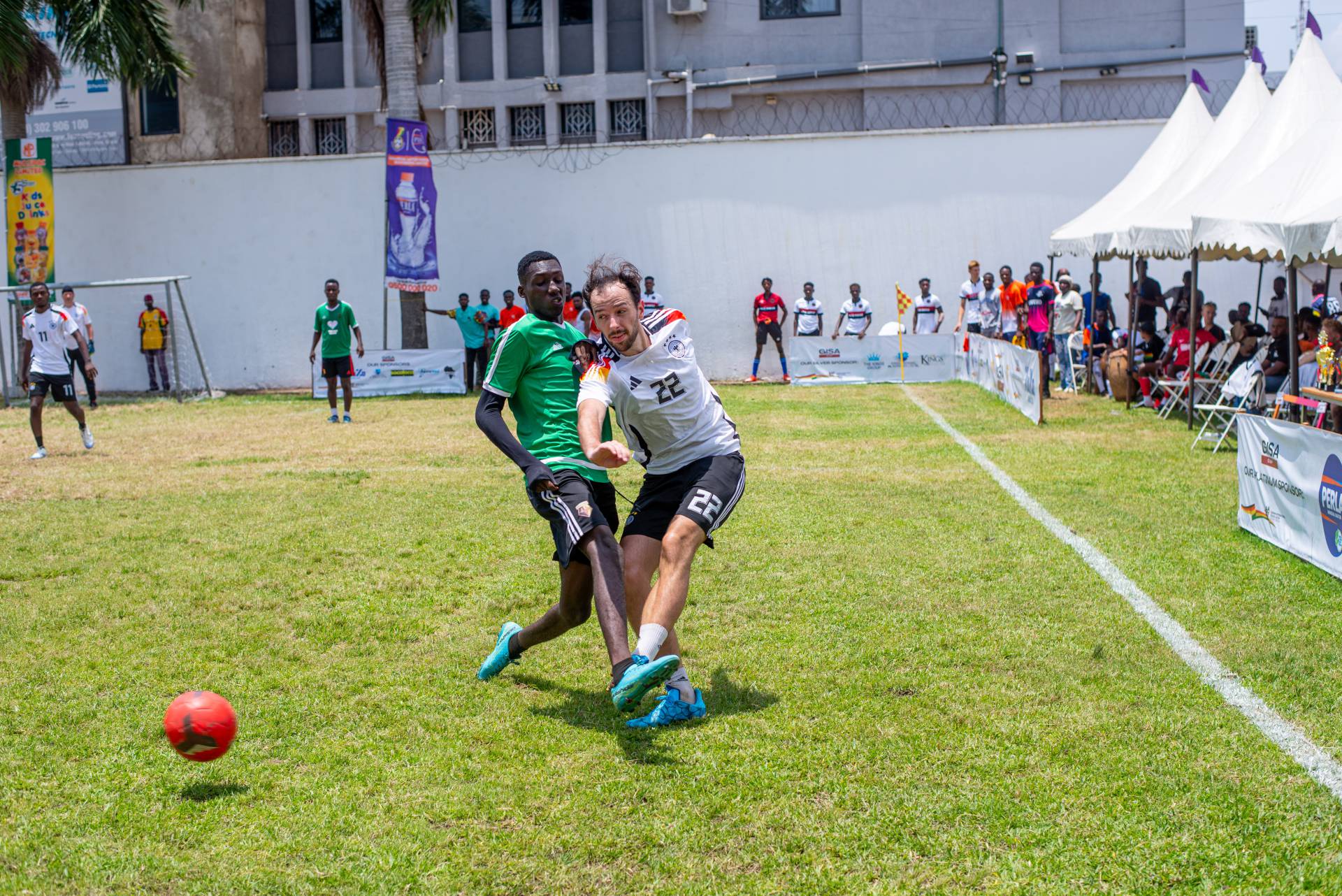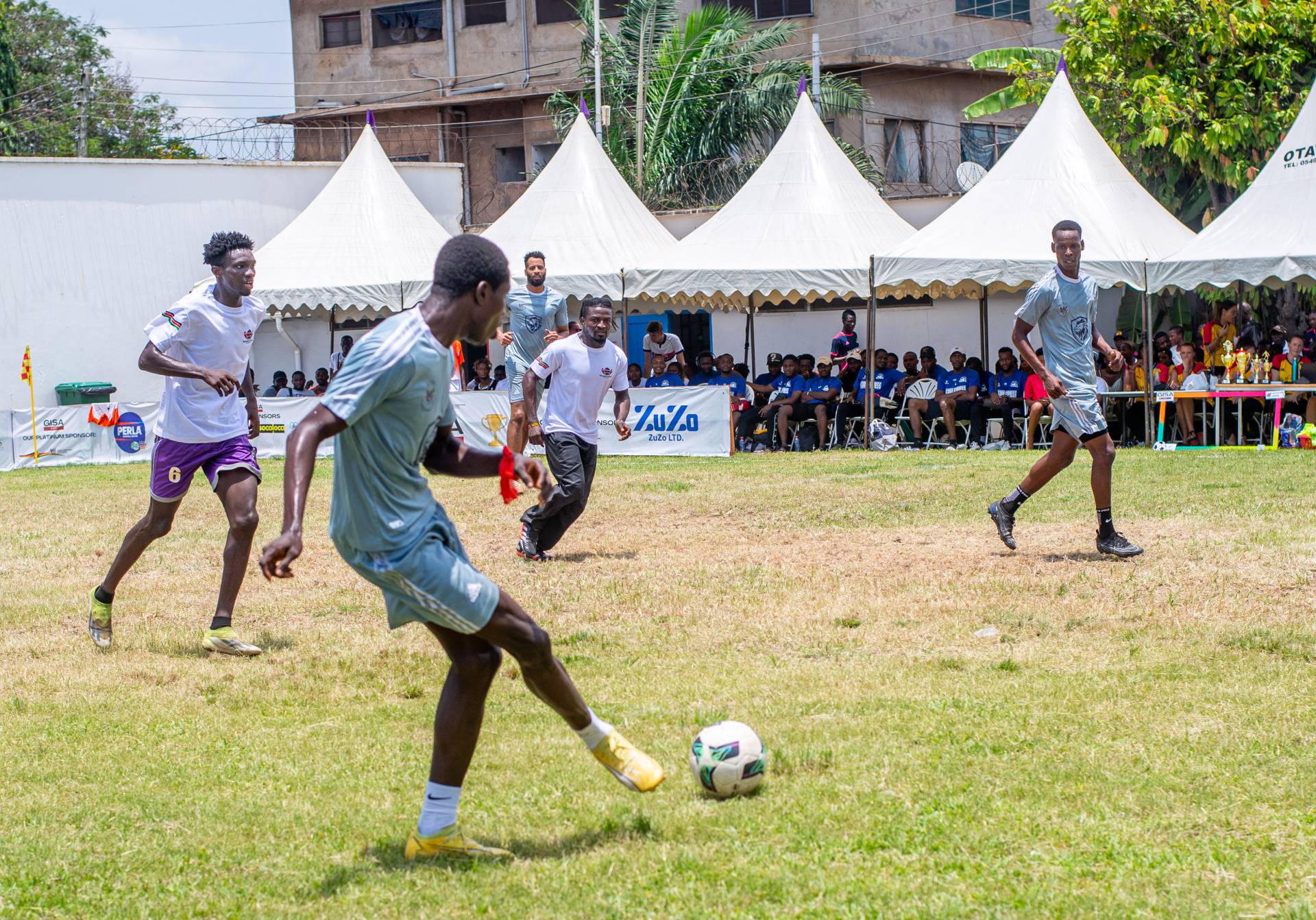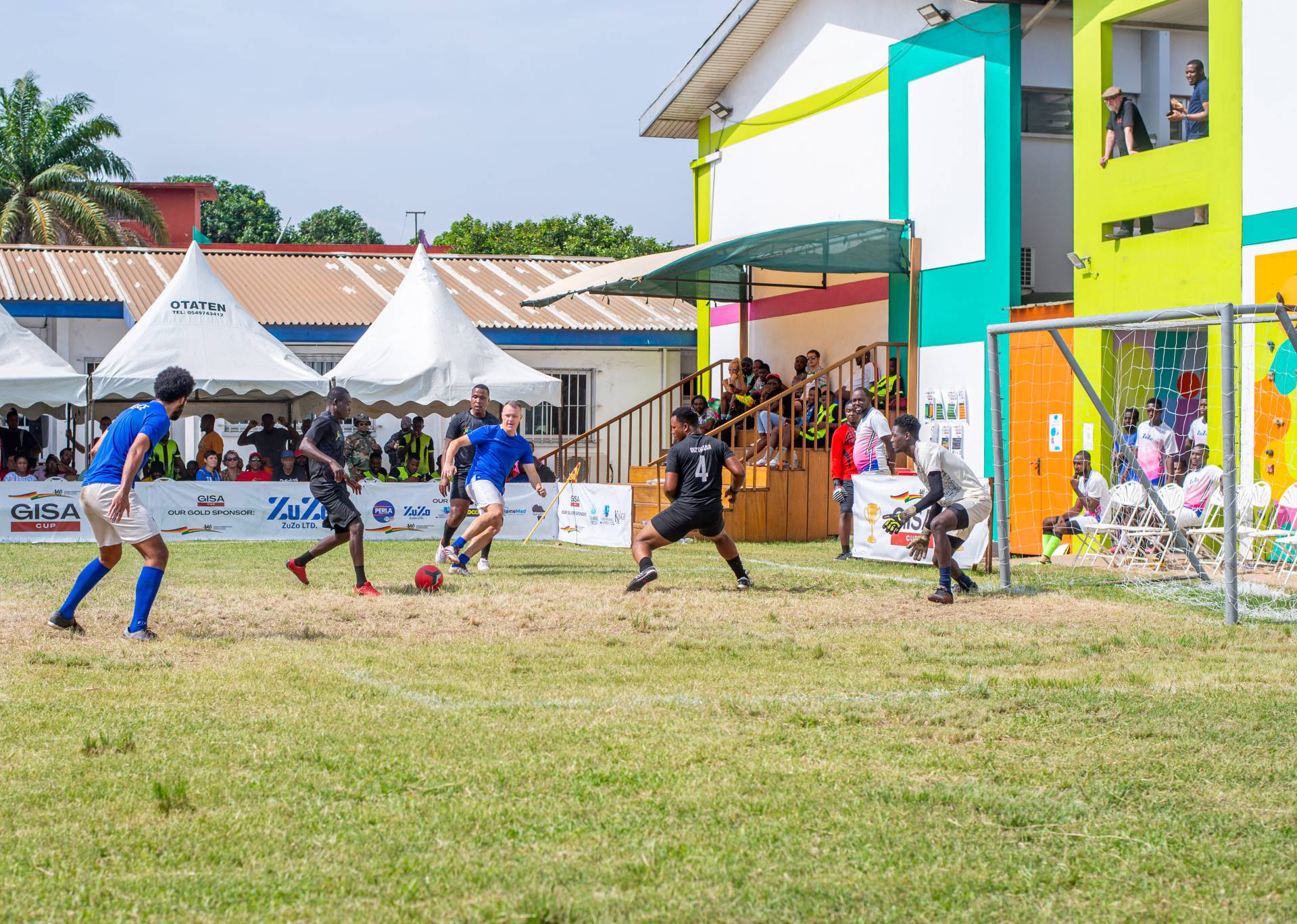 A heartfelt thank you was extended to the generous sponsors of the tournament: Fairafric, HomeMed (also responsible for first aid!), Kings Packaging, Perla (platinum and main sponsor), Socaloca, and ZuZo Ltd. Food and refreshments were plentiful – from classic stadium sausages to Ghanaian Jollof rice, there was something for everyone. The event was also very family-friendly with craft activities from the Universal Wonderful Street Academy and crate climbing from the Ghana Mountaineers.