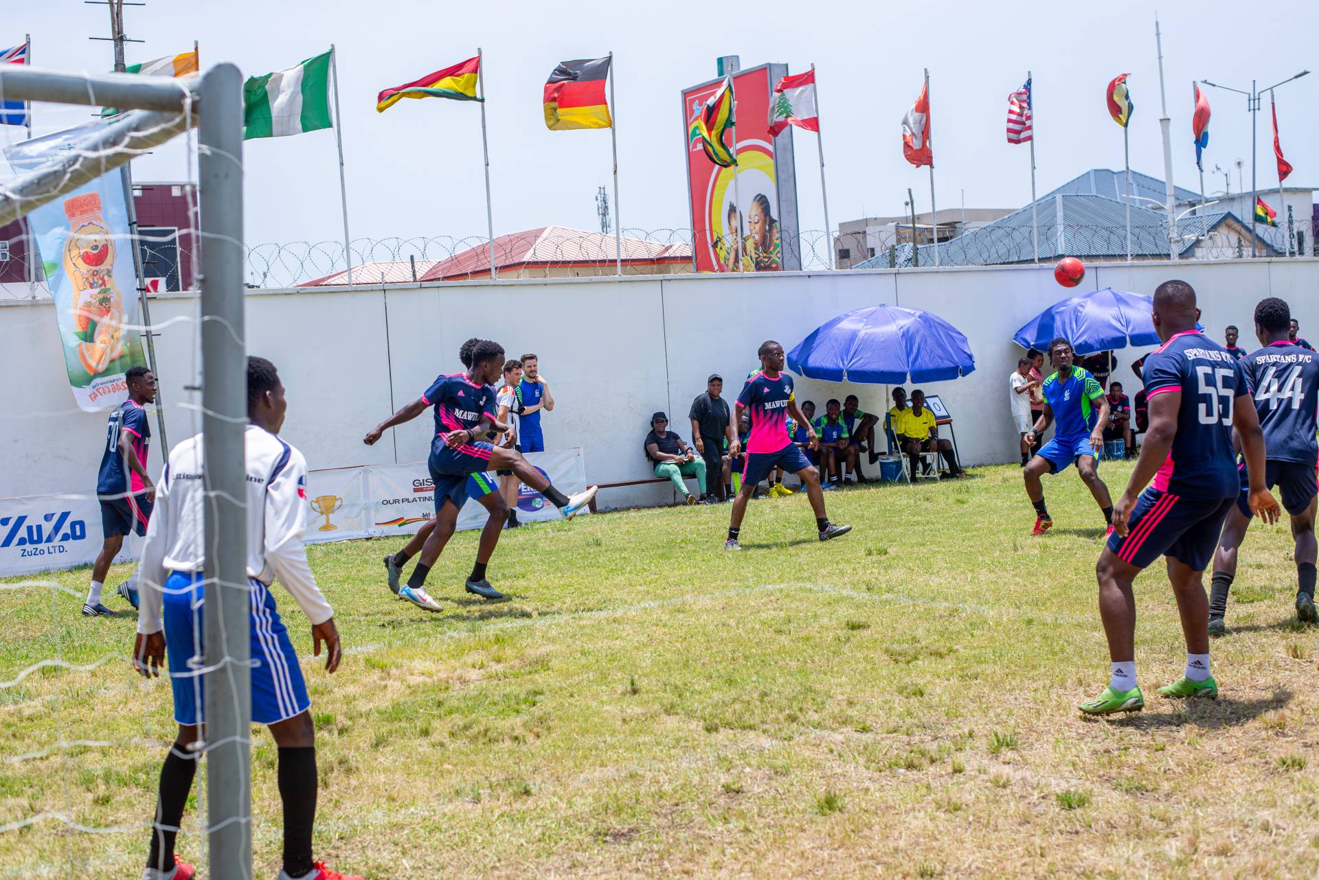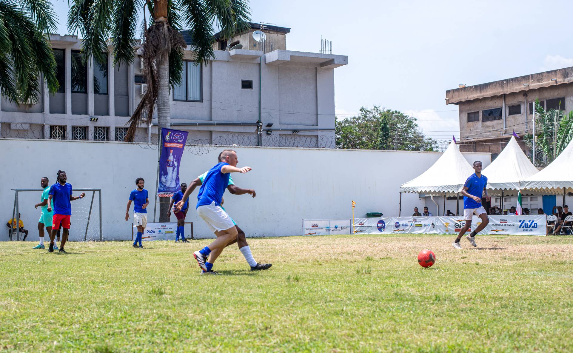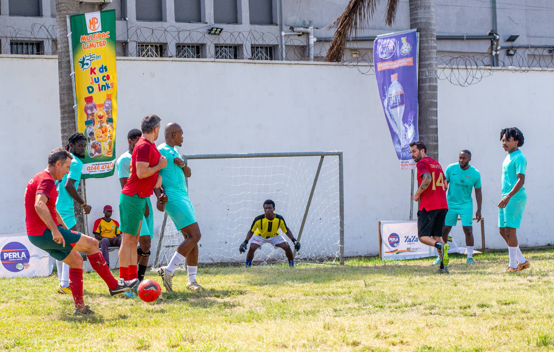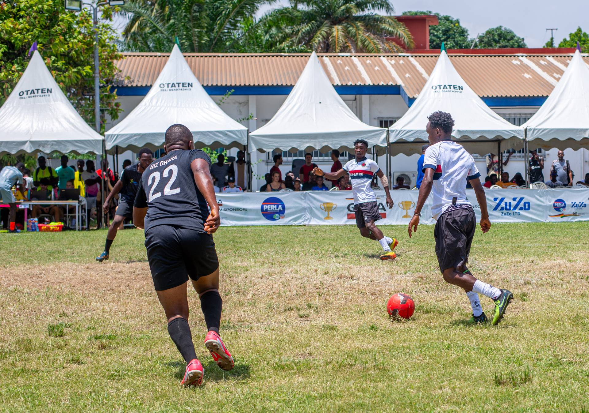 A heartfelt thank you was extended to the generous sponsors of the tournament: Fairafric, HomeMed (also responsible for first aid!), Kings Packaging, Perla (platinum and main sponsor), Socaloca, and ZuZo Ltd. Food and refreshments were plentiful – from classic stadium sausages to Ghanaian Jollof rice, there was something for everyone. The event was also very family-friendly with craft activities from the Universal Wonderful Street Academy and crate climbing from the Ghana Mountaineers.