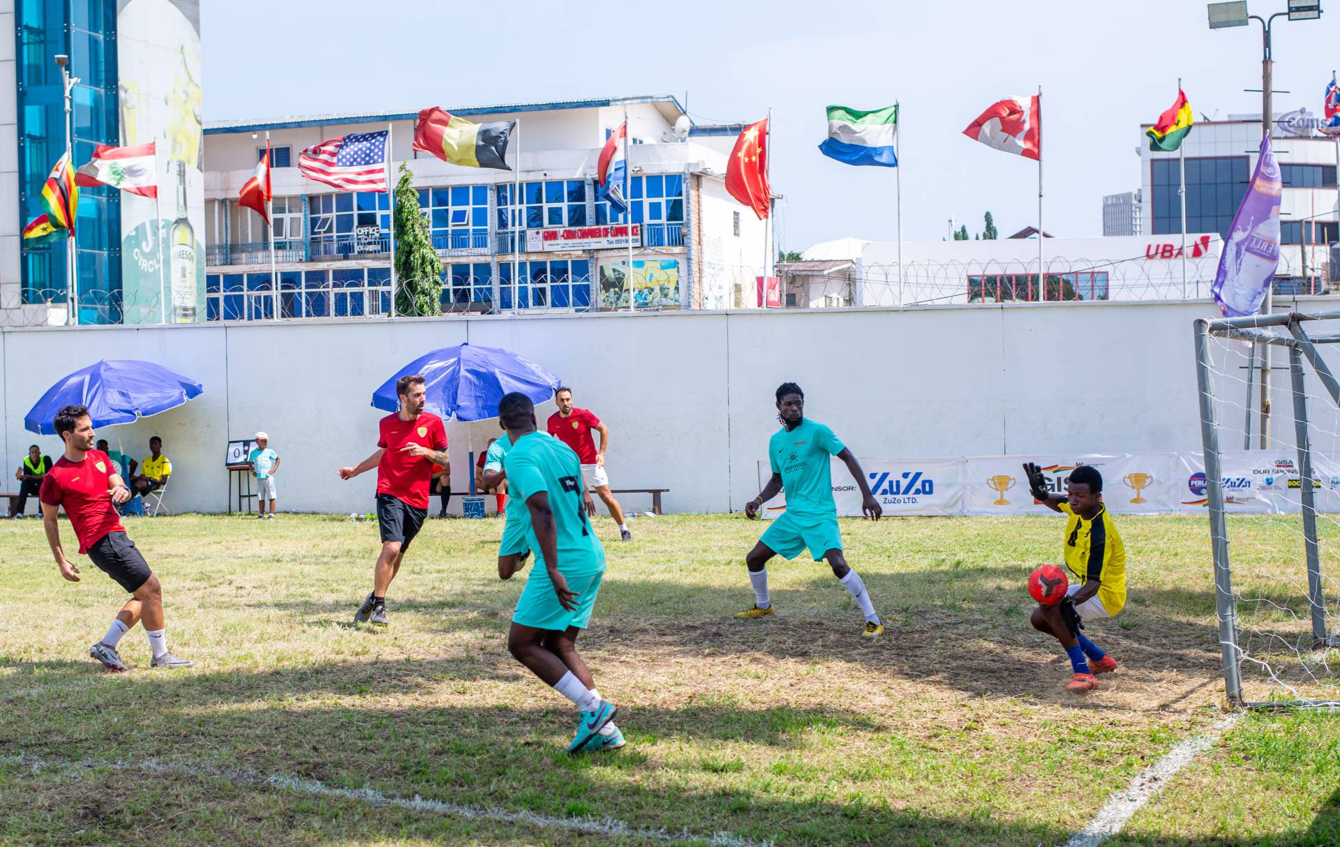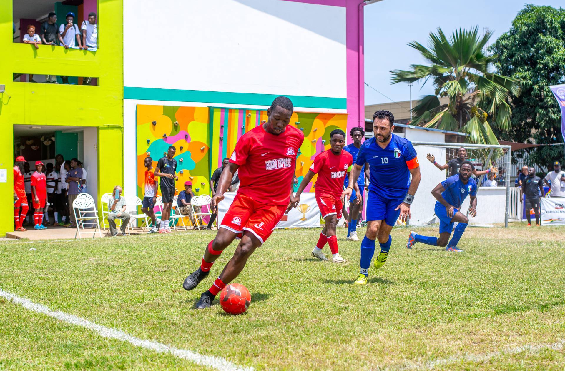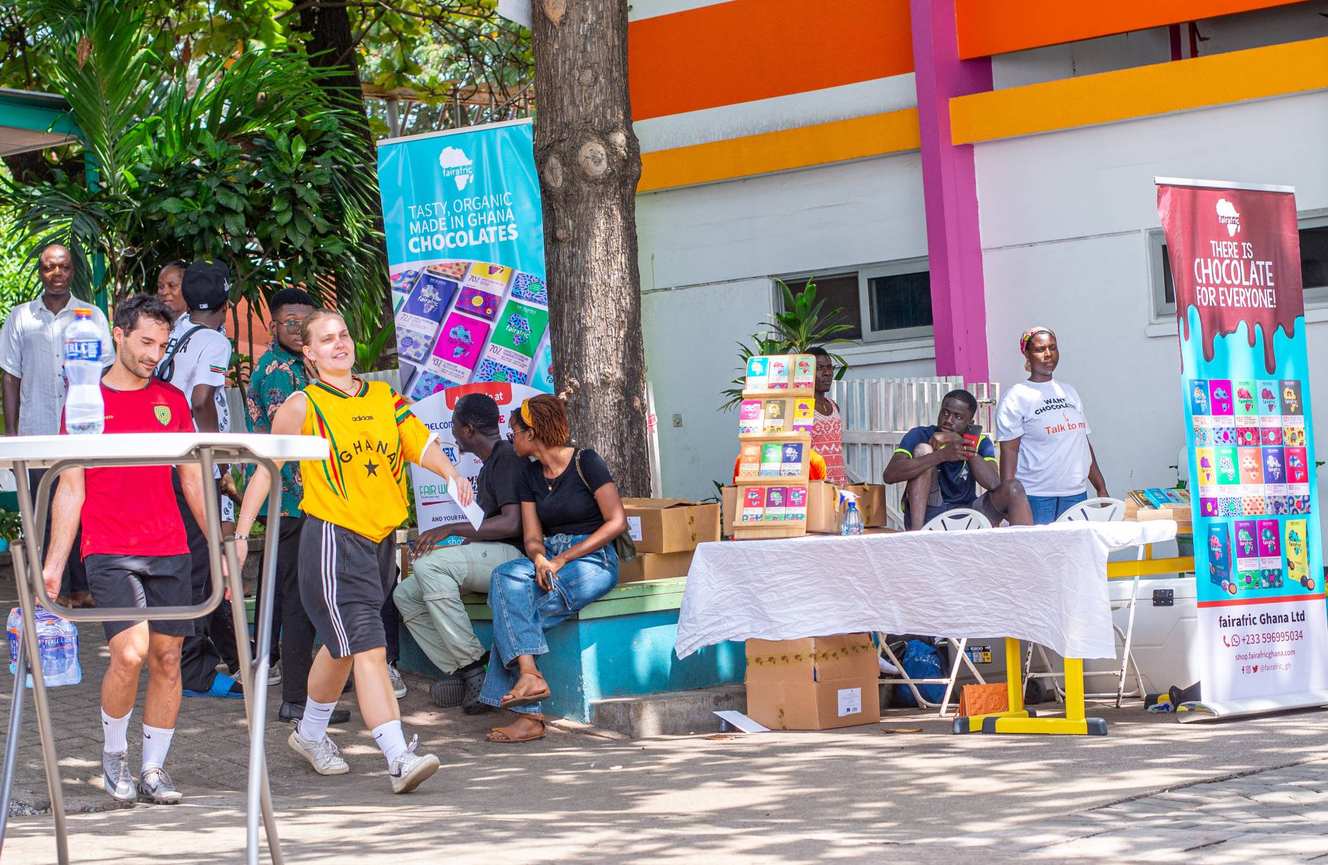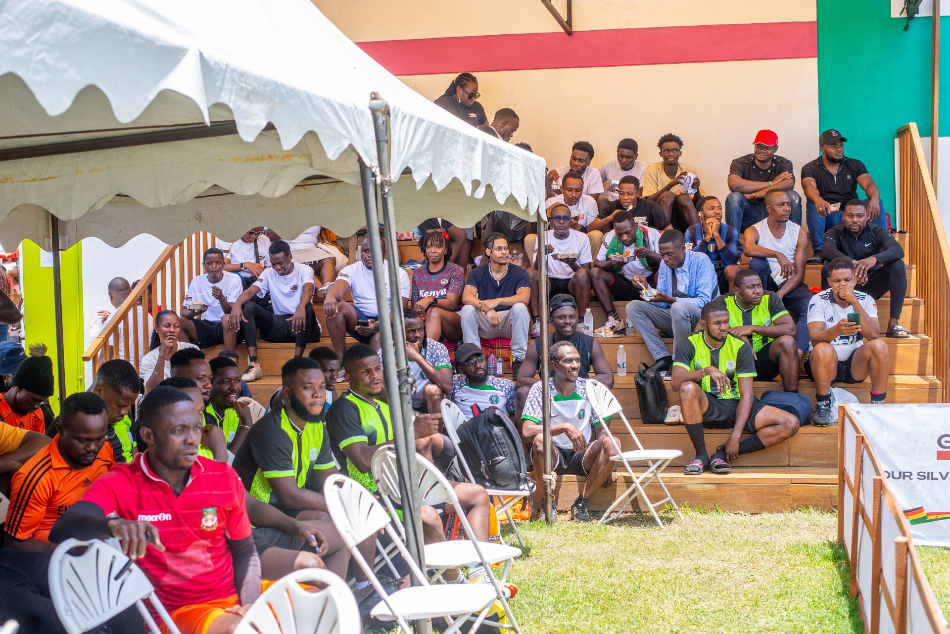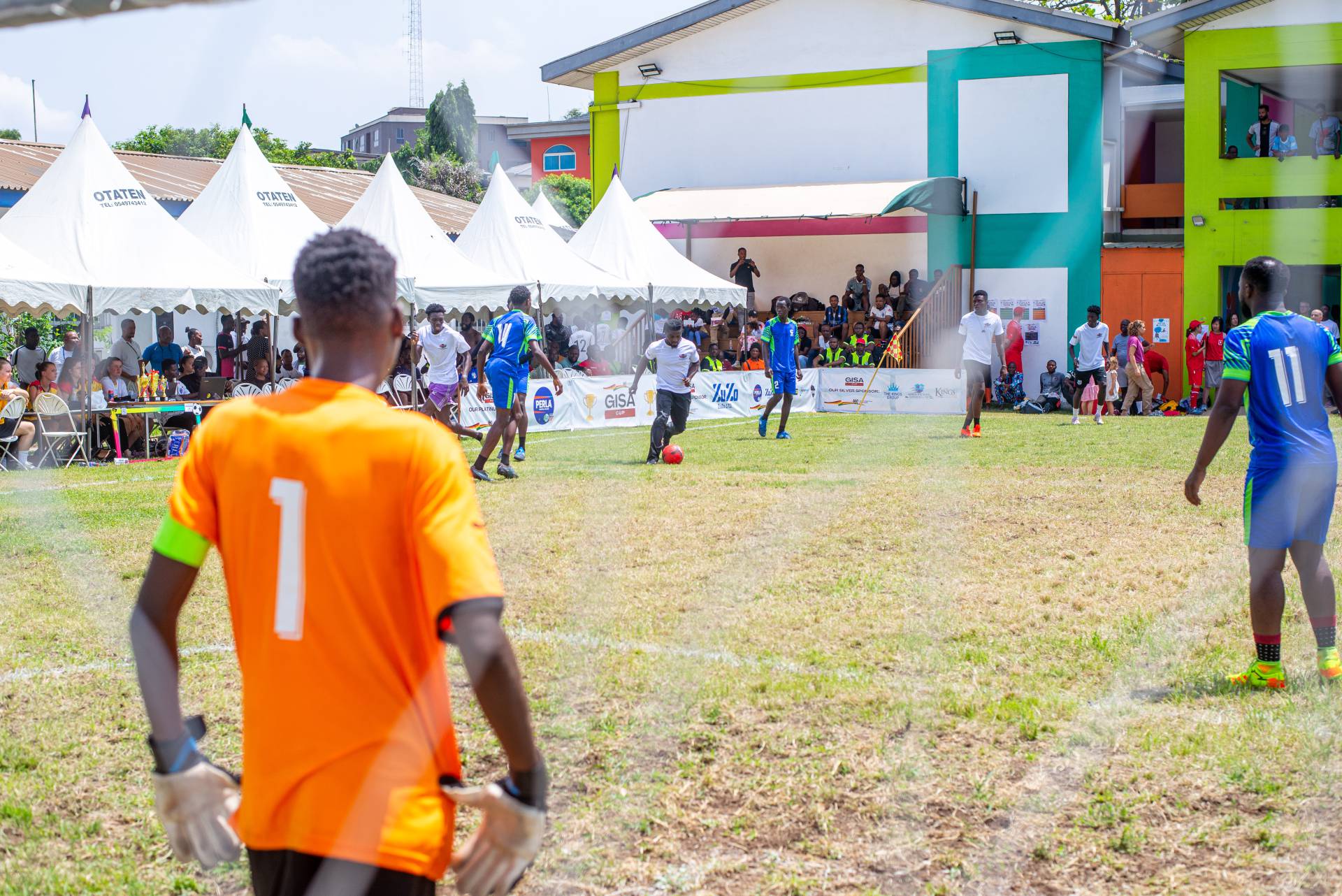 A heartfelt thank you was extended to the generous sponsors of the tournament: Fairafric, HomeMed (also responsible for first aid!), Kings Packaging, Perla (platinum and main sponsor), Socaloca, and ZuZo Ltd. Food and refreshments were plentiful – from classic stadium sausages to Ghanaian Jollof rice, there was something for everyone. The event was also very family-friendly with craft activities from the Universal Wonderful Street Academy and crate climbing from the Ghana Mountaineers.