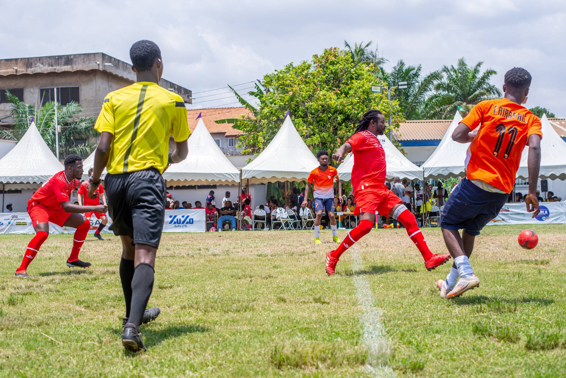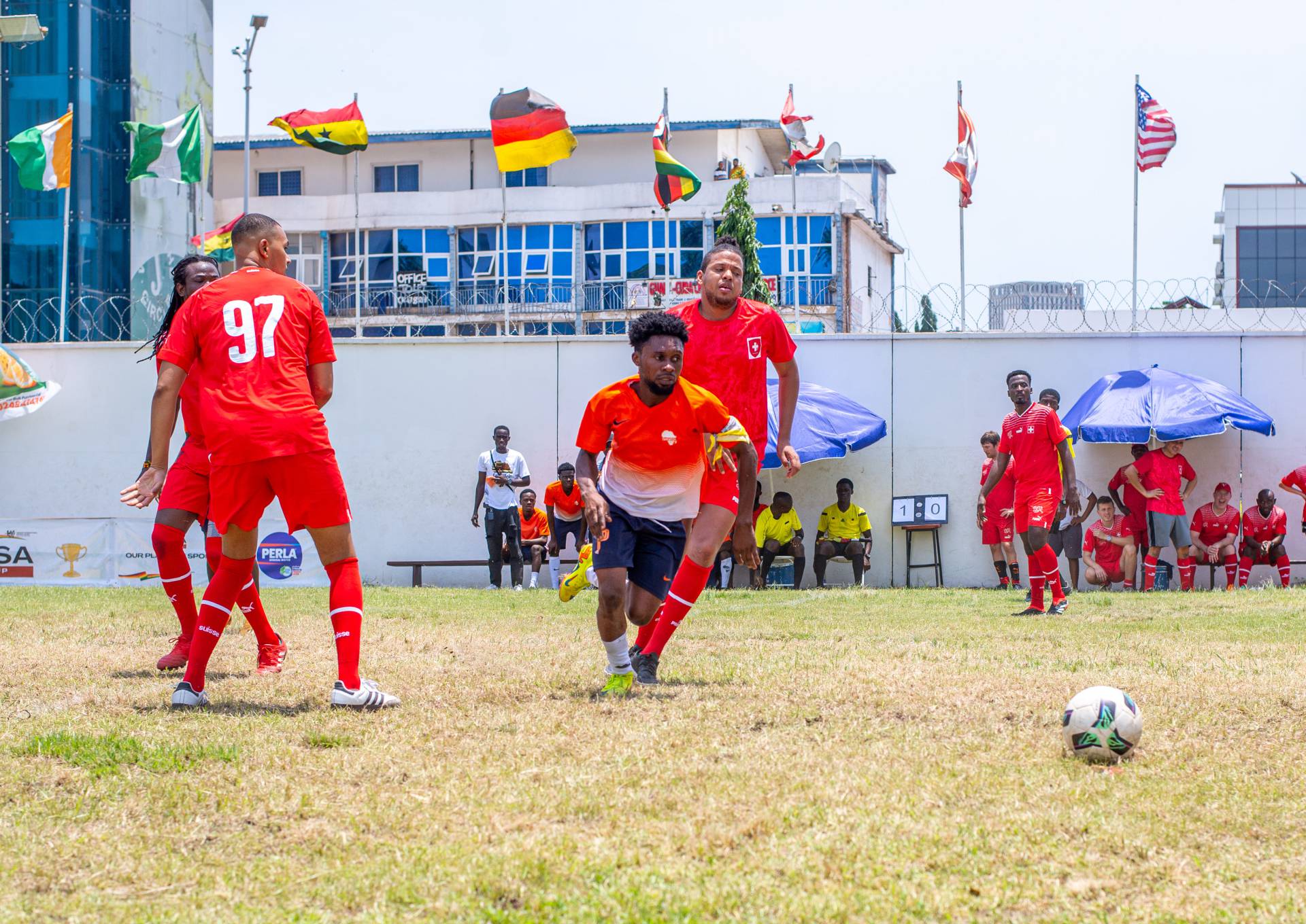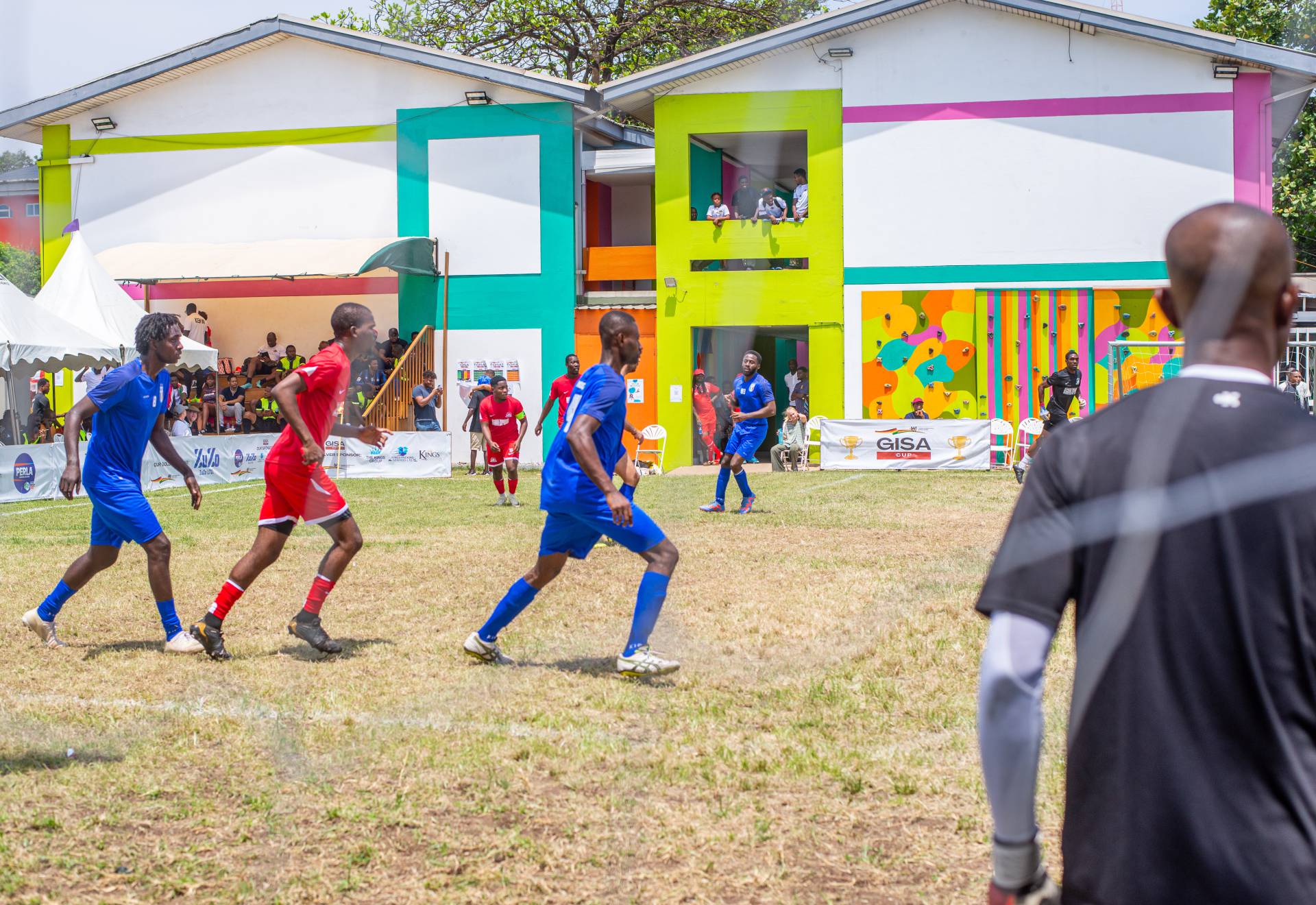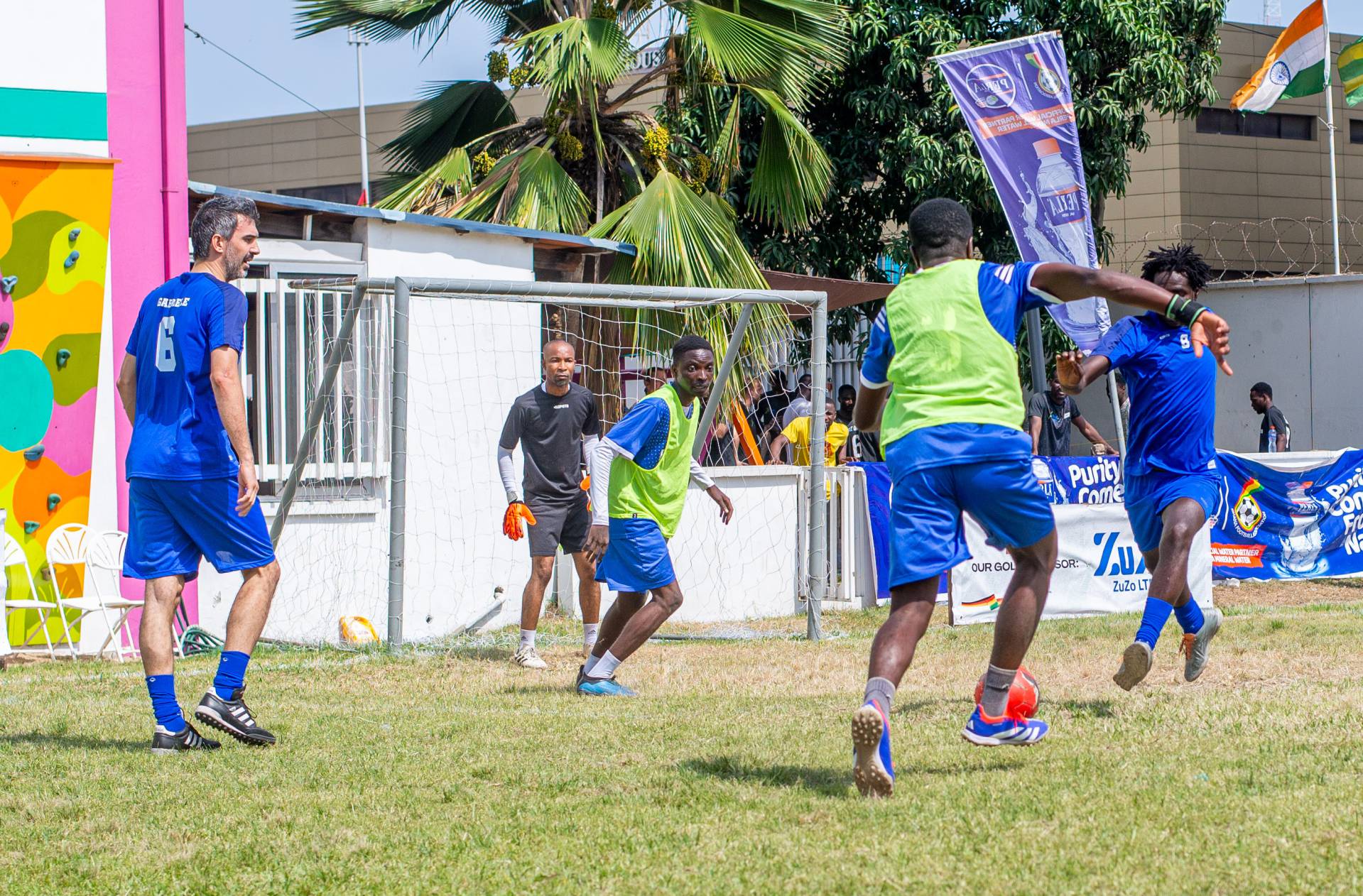 A heartfelt thank you was extended to the generous sponsors of the tournament: Fairafric, HomeMed (also responsible for first aid!), Kings Packaging, Perla (platinum and main sponsor), Socaloca, and ZuZo Ltd. Food and refreshments were plentiful – from classic stadium sausages to Ghanaian Jollof rice, there was something for everyone. The event was also very family-friendly with craft activities from the Universal Wonderful Street Academy and crate climbing from the Ghana Mountaineers.