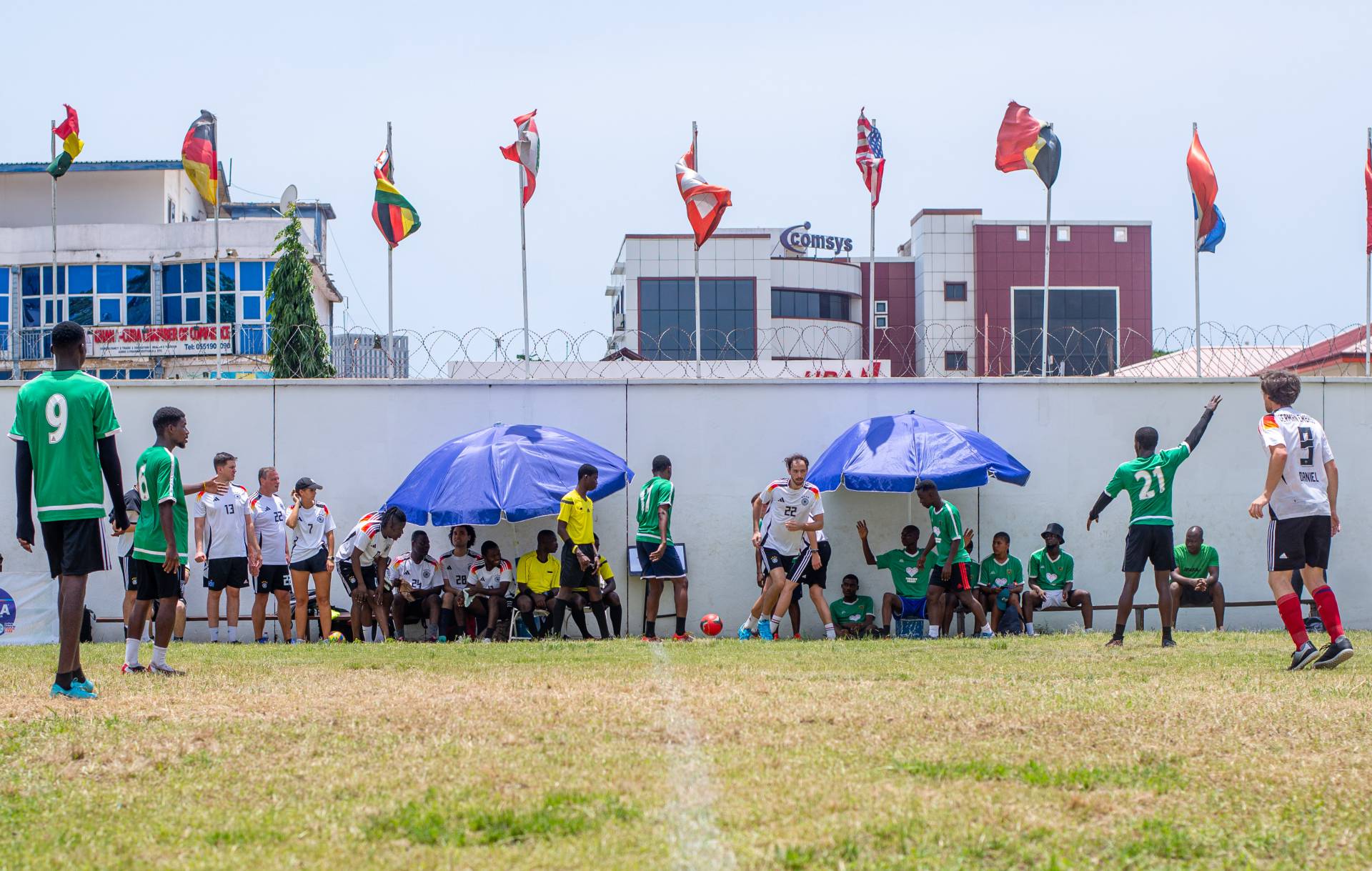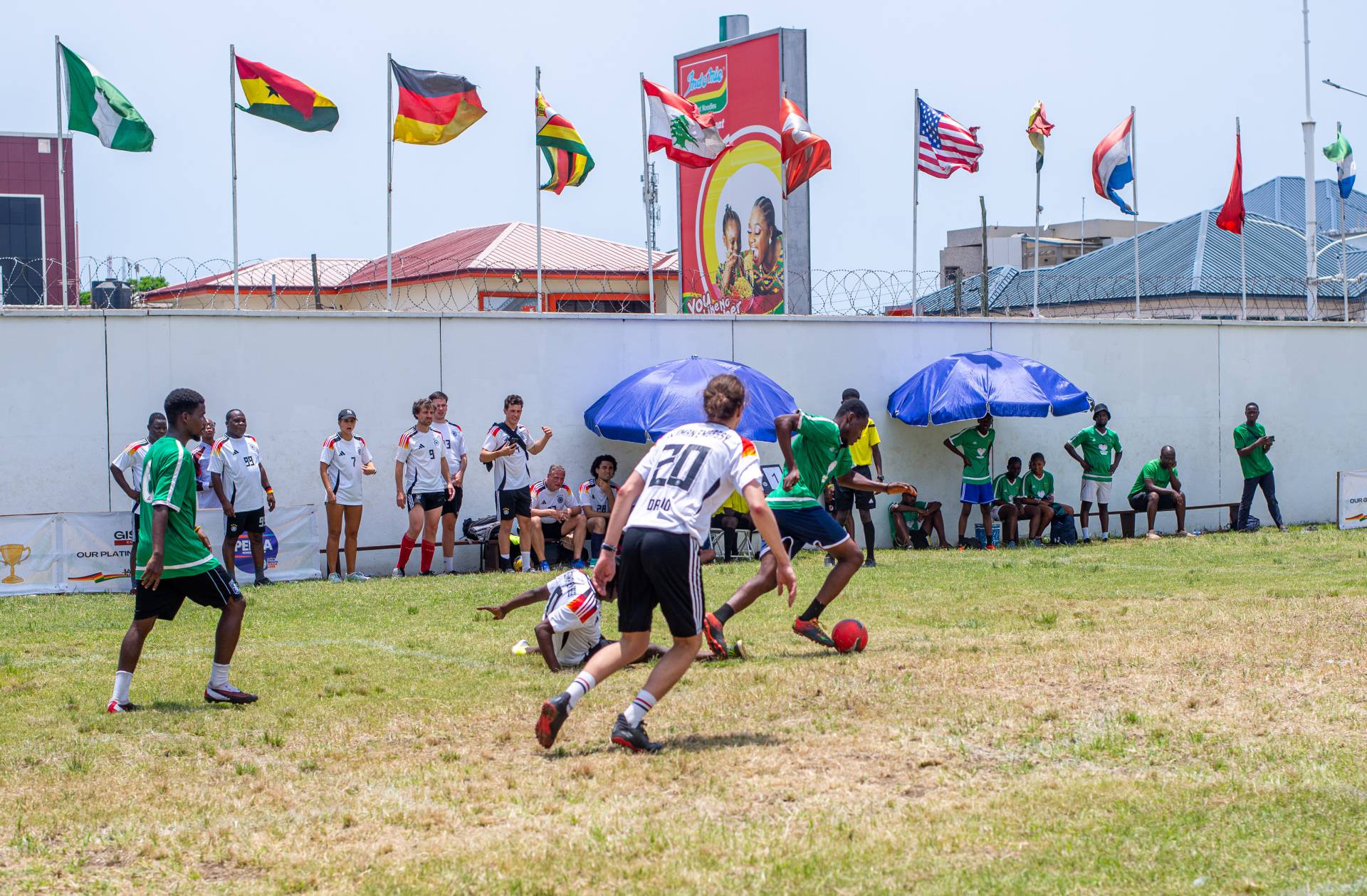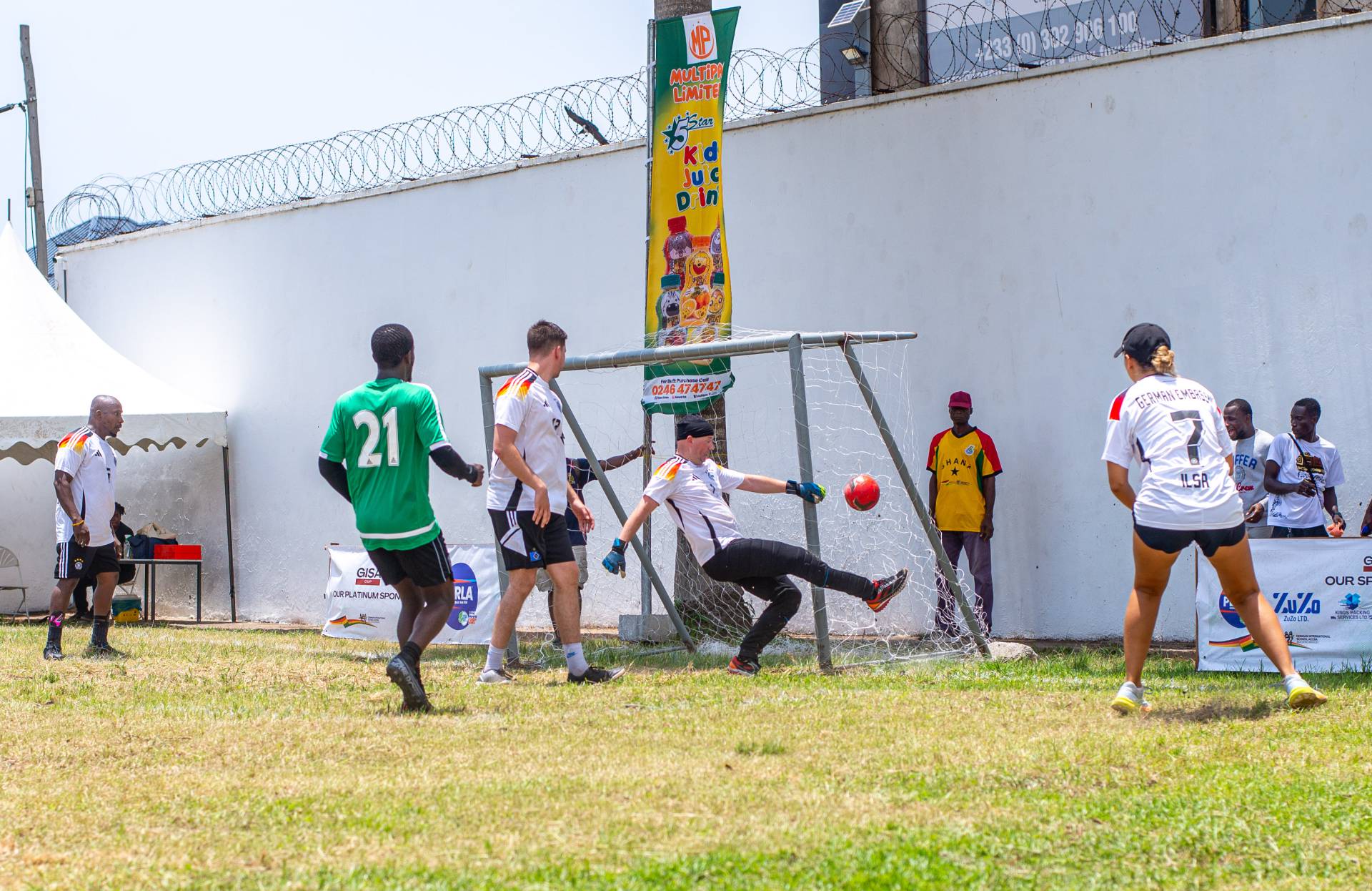 The first matches kicked off at 8:30 AM, and the competition continued at a high level until the grand final under floodlights at 6 PM. In thrilling quarter-final matches, Ghana, GISA, Nigeria, and GIZ secured their places in the next round. The semi-finals provided even more exciting moments: GISA defeated Ghana in a penalty shootout 2-1, while GIZ overcame Nigeria, also in a penalty shootout, with the same score.