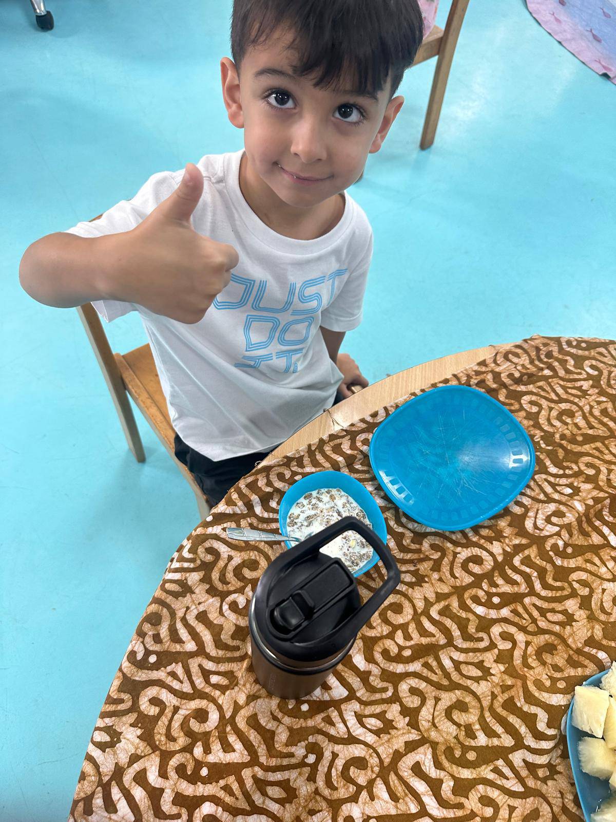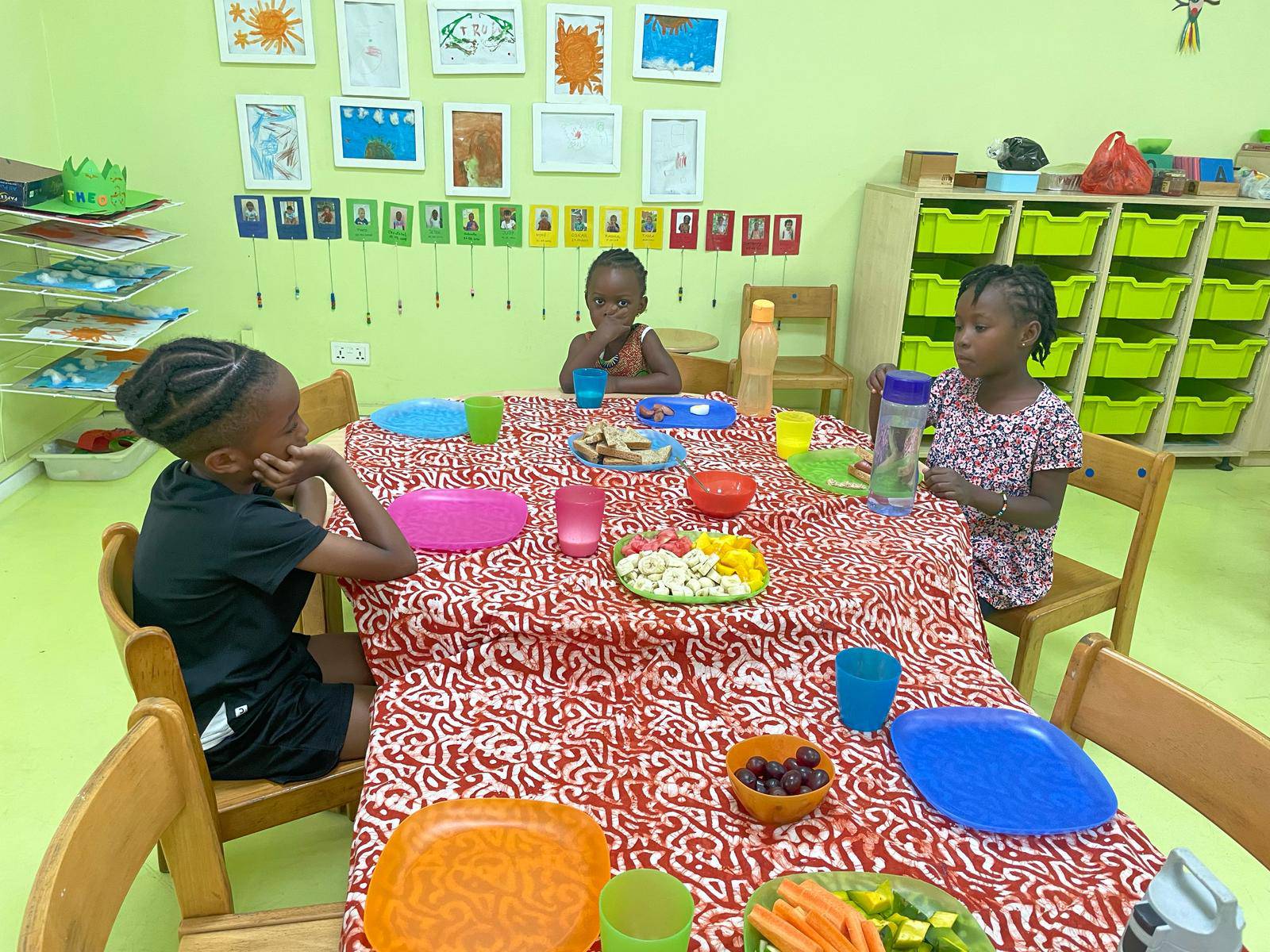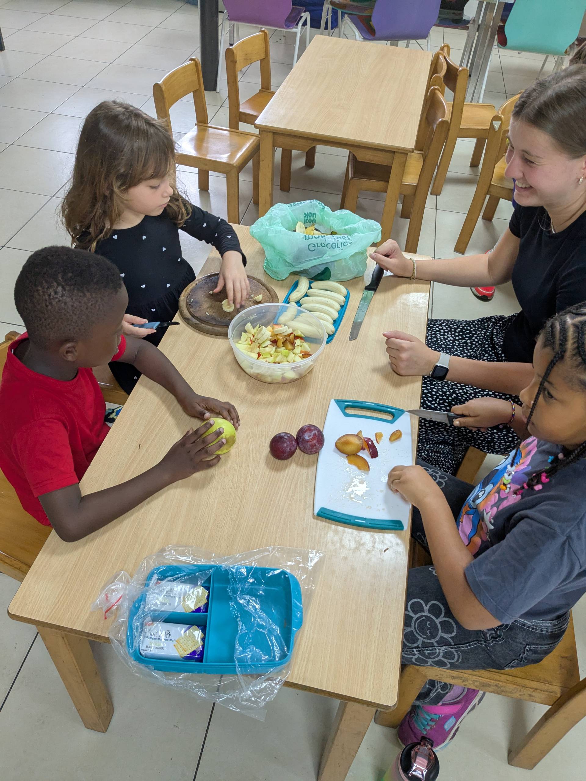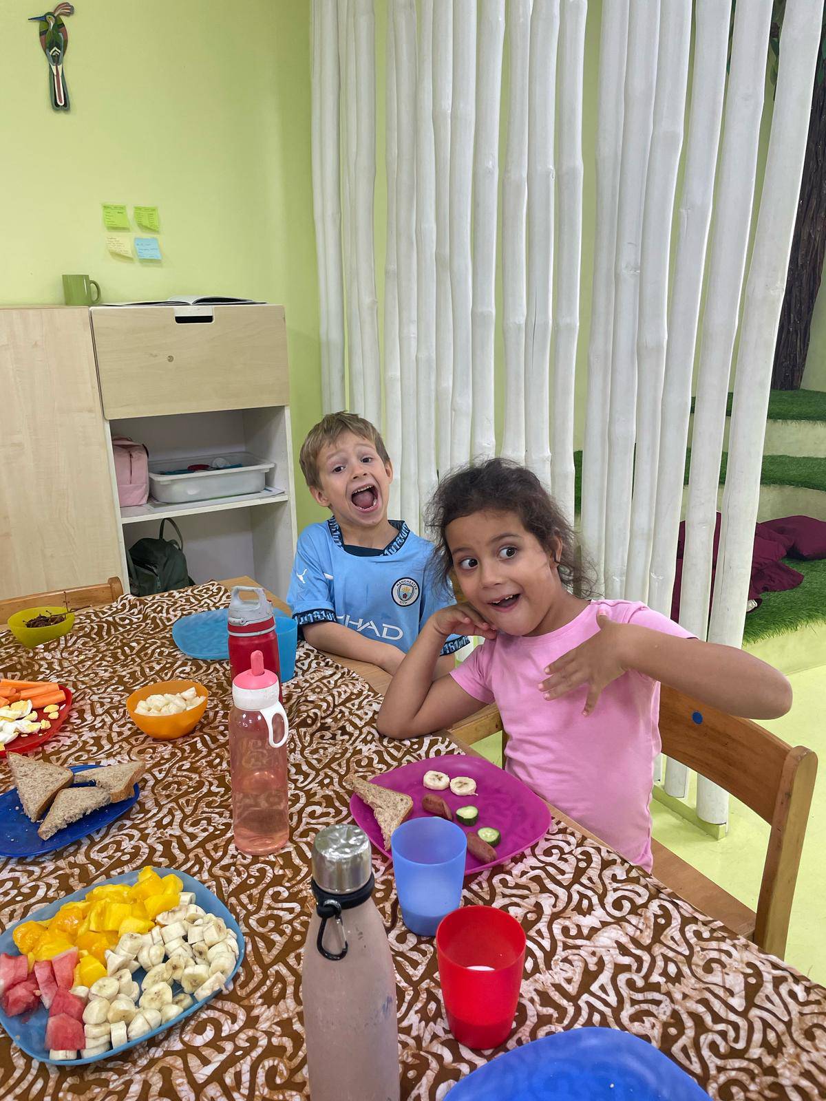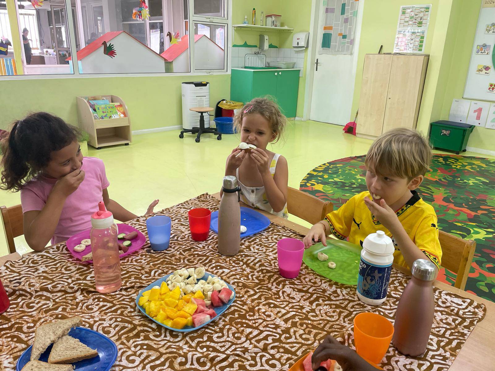 For their healthy breakfast, they followed the food pyramid – focusing on fruits and vegetables and enjoying just a small portion of bread. A big thank-you to all parents who contributed healthy items!