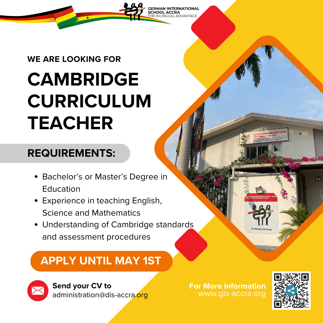 We are looking for a teacher experienced in the Cambridge curriculum for the new school year 2024/25. The application deadline is May 1, 2024. We are looking forward to your application!