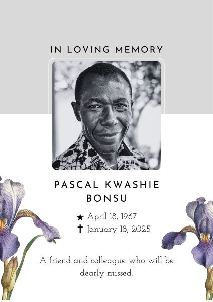Our heartfelt condolences go out to his family and loved ones during this difficult time. Pascal Bonsu will always be remembered with great respect as a dedicated, kind-hearted, and esteemed member of our team.
