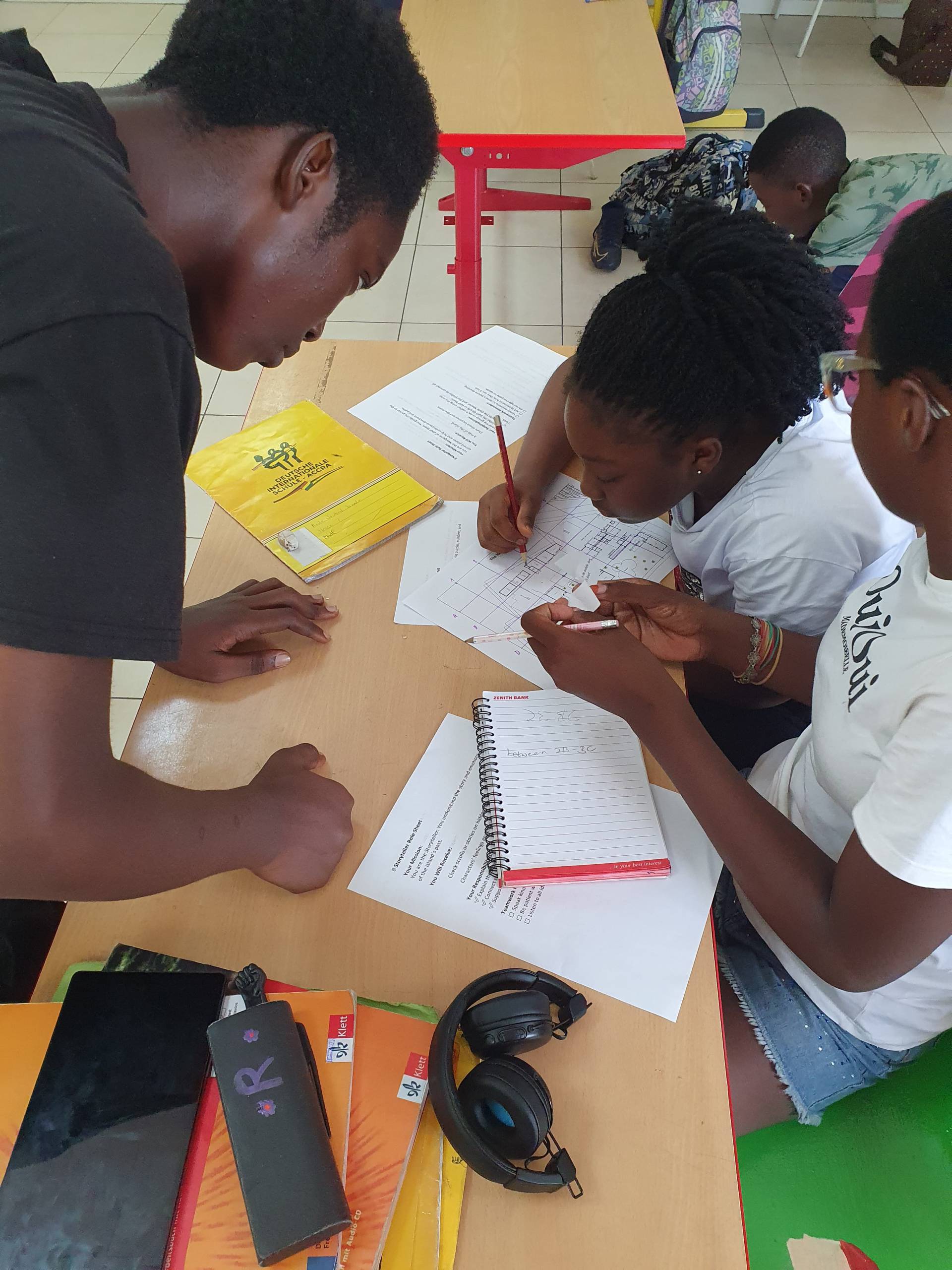 The DaF class (German as a Foreign Language β Grades 5, 6, 7) engaged with two-way prepositions, modal verbs, and team-building exercises.