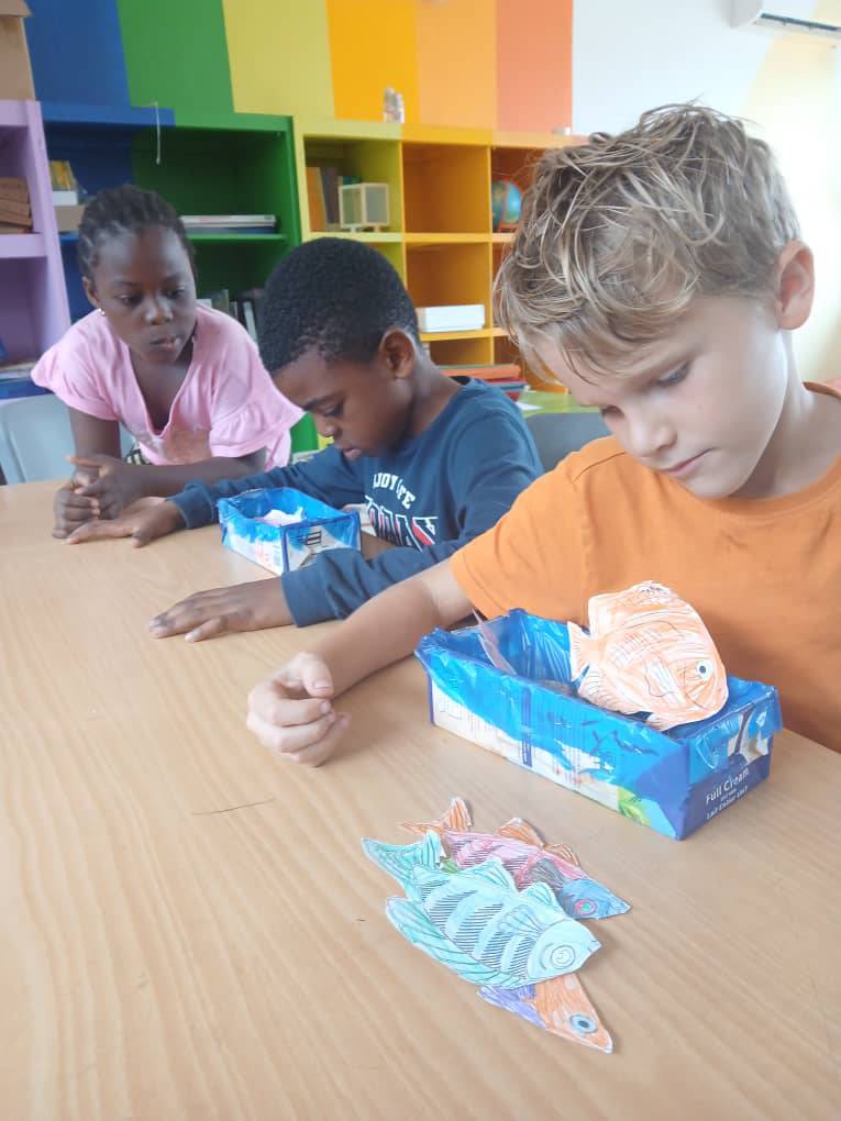 Since this week, music instead of art has been on the timetable for class 1/2 on Wednesdays. The first lesson was all about the length of musical notes - learnt through play with the words crocodile, reindeer, chipmunk and meerkat. This made rhythm tangible! Some children made stick puppets and used them to retell a story - a great combination of art and creative storytelling. The aquariums were completed in Science. A special highlight: Gerald Asamoah visited the class! Together with the children, they quizzed, danced and laughed. An unforgettable moment for everyone!