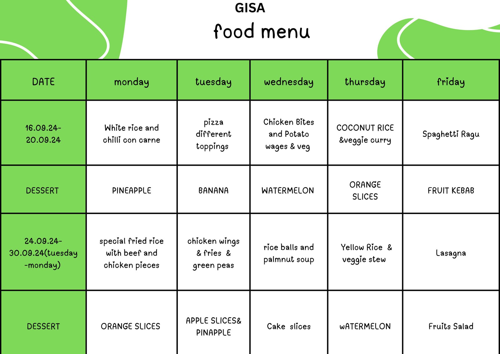 Please find attached the North Ridge Café meal plan for the last two weeks of September, which runs from September 16-27. As always, you can find the prices per child, the MoMo account and the meal plan on the website. If you have any questions, please don't hesitate to contact us.