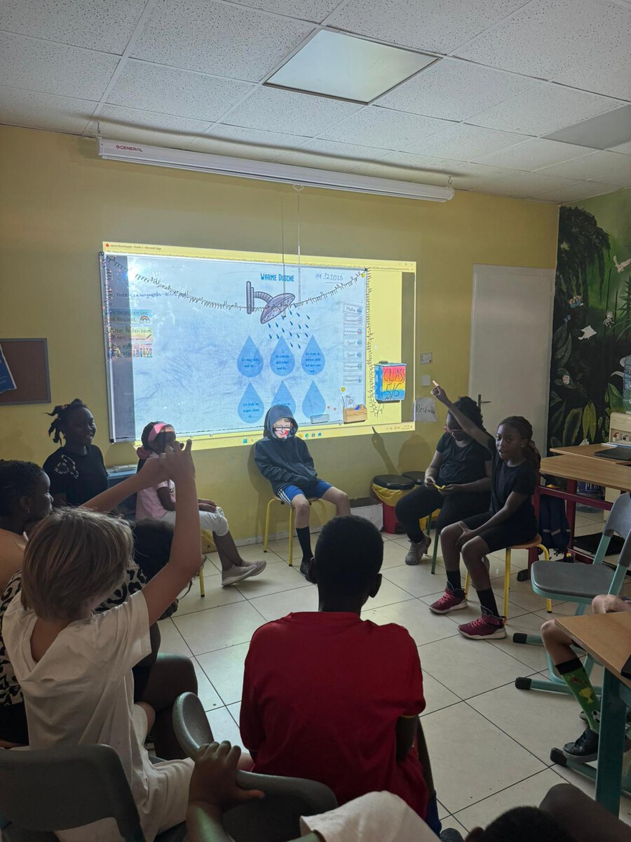 In Social Studies, students presented their career posters. This was followed by a discussion comparing professions in Ghana and Germany, which led to engaging conversations about different living environments and perspectives.