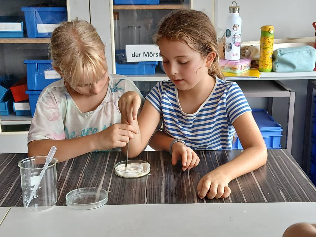 In German, the majority of the classes worked on the “Theater of the Oppressed”. Trainee Lennard Brodner created and performed a good play on the subject of poverty/wealth. The special thing about this type of theater is that it is performed spontaneously and freely. There are no set texts. It's more about finding a solution to an existing problem together - by slipping into roles and expressing ourselves spontaneously and creatively. In science, we started with high expectations, with students learning about solving solutions and mixtures. Students learned the difference between soluble and insoluble solutions and between soluble and insoluble substances in solutions. Again, students learned the difference between floating and sinking.
