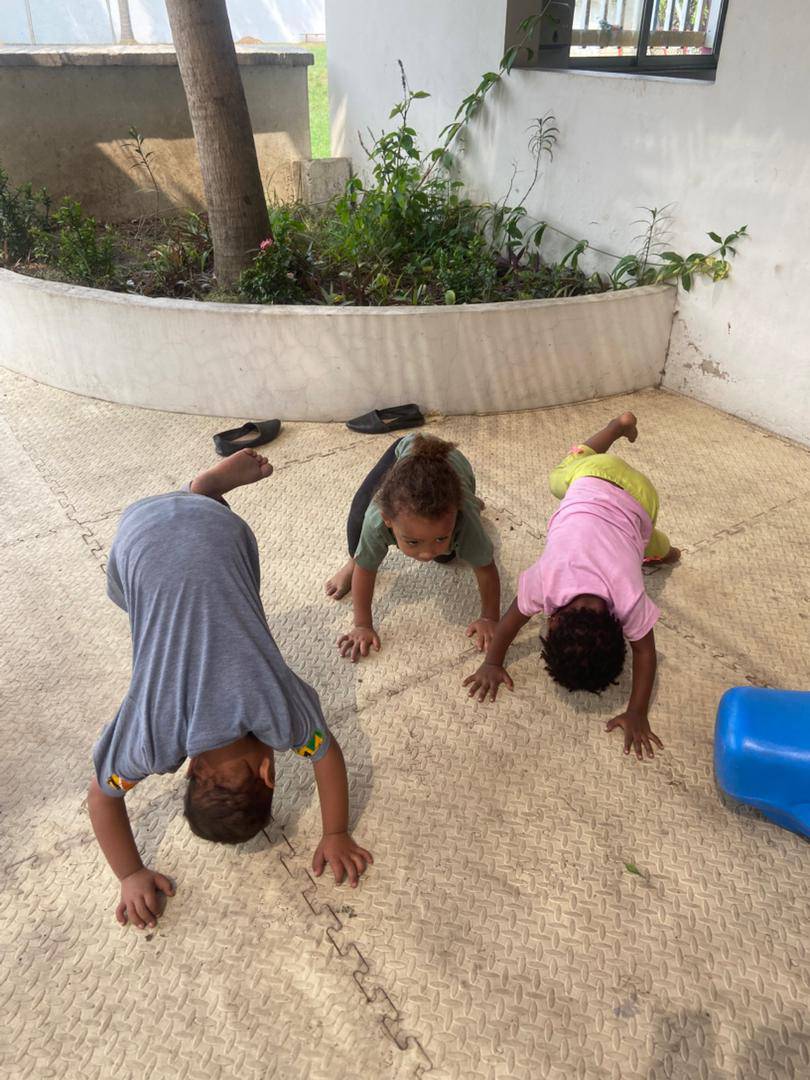 We welcomed a new child to our group in the nursery. We also did yoga together, which was great fun for the children and strengthened their body awareness and gross motor skills. We were able to play a lot in the garden and discover nature. Another highlight was the creative handicrafts, where the children glued paper onto colorful circles. This allowed us to practise our fine motor skills and express ourselves creatively.