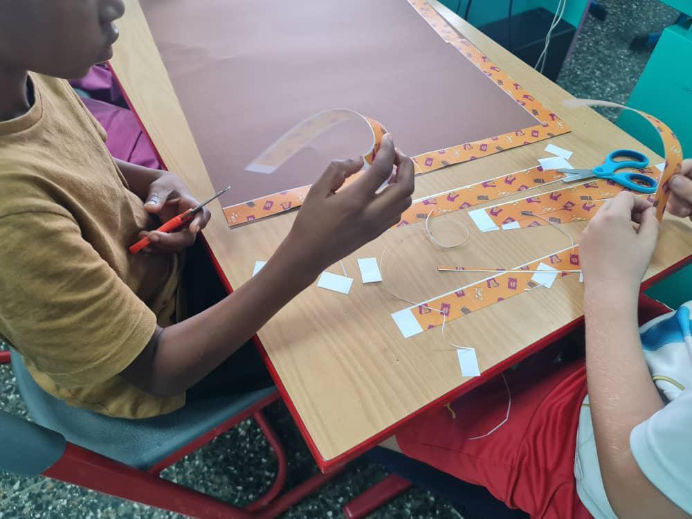 This week, things got really hands-on: our young fashion designers picked up needle and thread for the very first time. With great concentration and growing confidence, they began by marking their practice patterns on the fabric with tailor’s chalk before carefully cutting out the pieces.