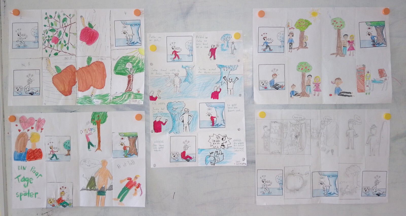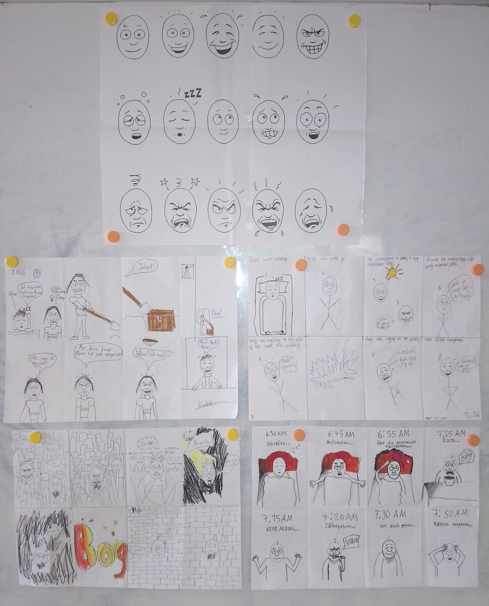Things got especially creative during our comic project, which we worked on together with Grade 5. First, the students completed their partner comics, and then they designed their own comics, with a particular focus on expressing emotions through facial expressions.