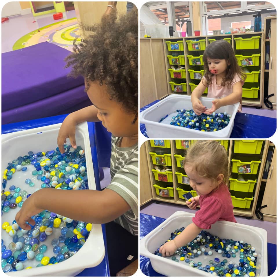 In a sensory box filled with colorful glass stones, the children were able to engage their senses, explore different materials, and practice their fine motor skills.