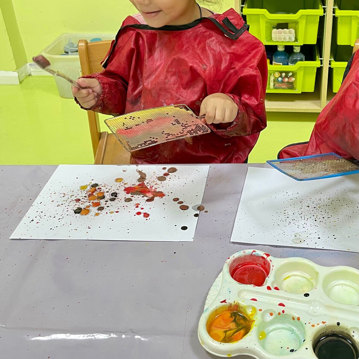 We celebrated a birthday at the crèche last week! We sang, danced and ate cake together. We also completed our “Colors” theme by having the children create colorful pictures with finger paints. They had a lot of fun trying out the different colors and letting their creativity run wild. Next week we will start with the new topic “Made in Germany”.