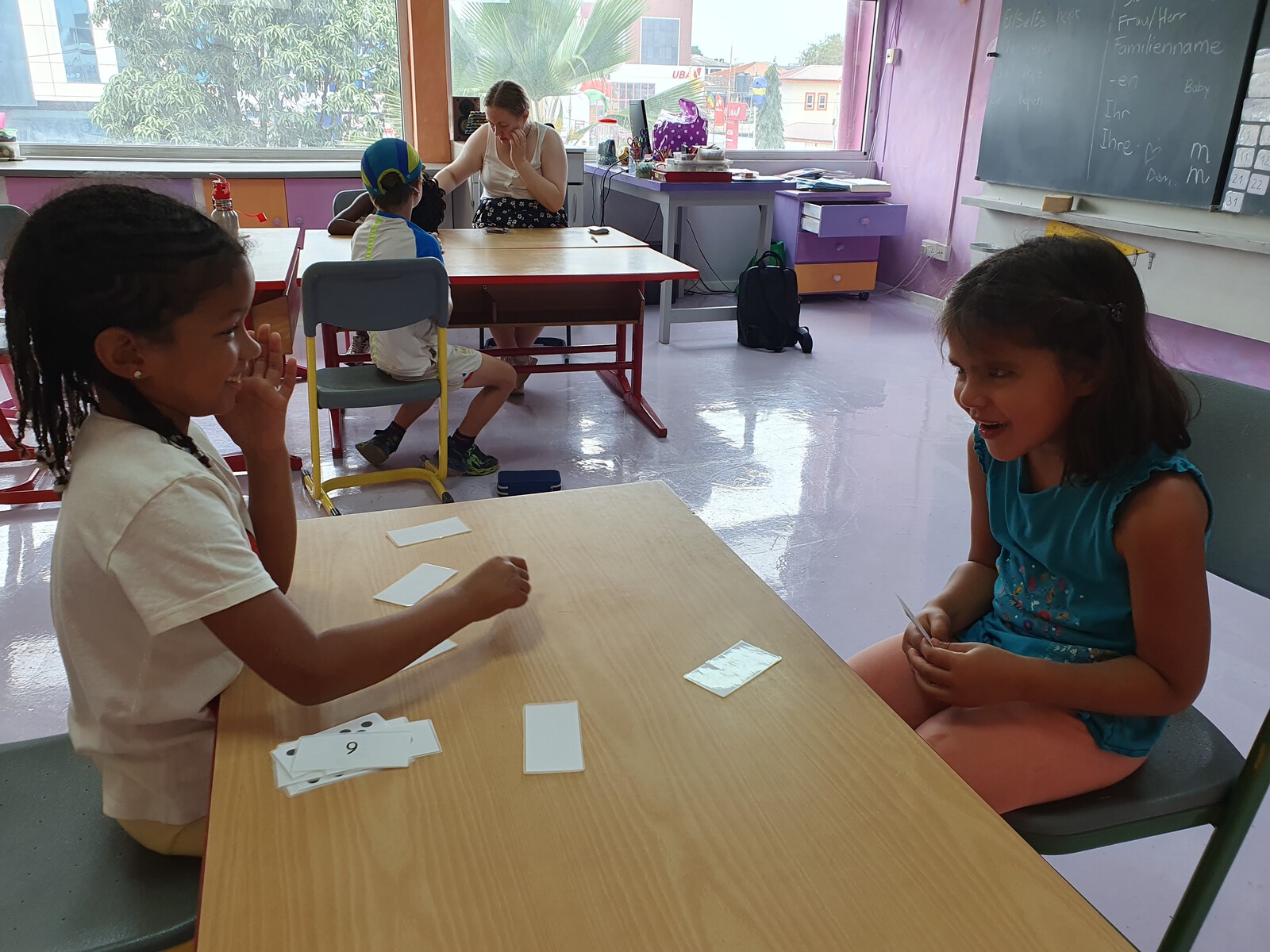 Starting with a day off, it was a short but successful week: In third grade German, we managed to go to the library. There we read together as a ‘reading tandem’. In year 4, we wrote our class assignment on the topic of reports and started our new topic ‘Verbs’. With Benjamin Akrong, we worked on and practised new vocabulary about the schoolyard and spread the words ‘ventilator’ and ‘air conditioner’ among our classmates. In English this week, our students have been focussing on the art of story writing! They learnt how to structure their stories. Students practised writing their own stories using the structure of the mountain story, which encouraged their creativity and organisational skills. In English with Laura Lützeler, we have established our first stories on the ‘farmer and monkey’. Next week the two English groups will present their findings to each other. Encourage your child to tell you their story at home! In Maths, we have continued to work individually on the new number range. In Science, Year 3/4 completed a short worksheet on what they learnt last week to refresh their knowledge and their results were excellent. In Ethics we have almost finalised our games and hopefully will be able to try some out next week. A particular highlight was a joint lesson with Year 5/6, where we read ‘A Doll for Ashe’ together and discussed the content. A wonderful experience. The week ended wonderfully with another party break. We said thank you, danced and celebrate.