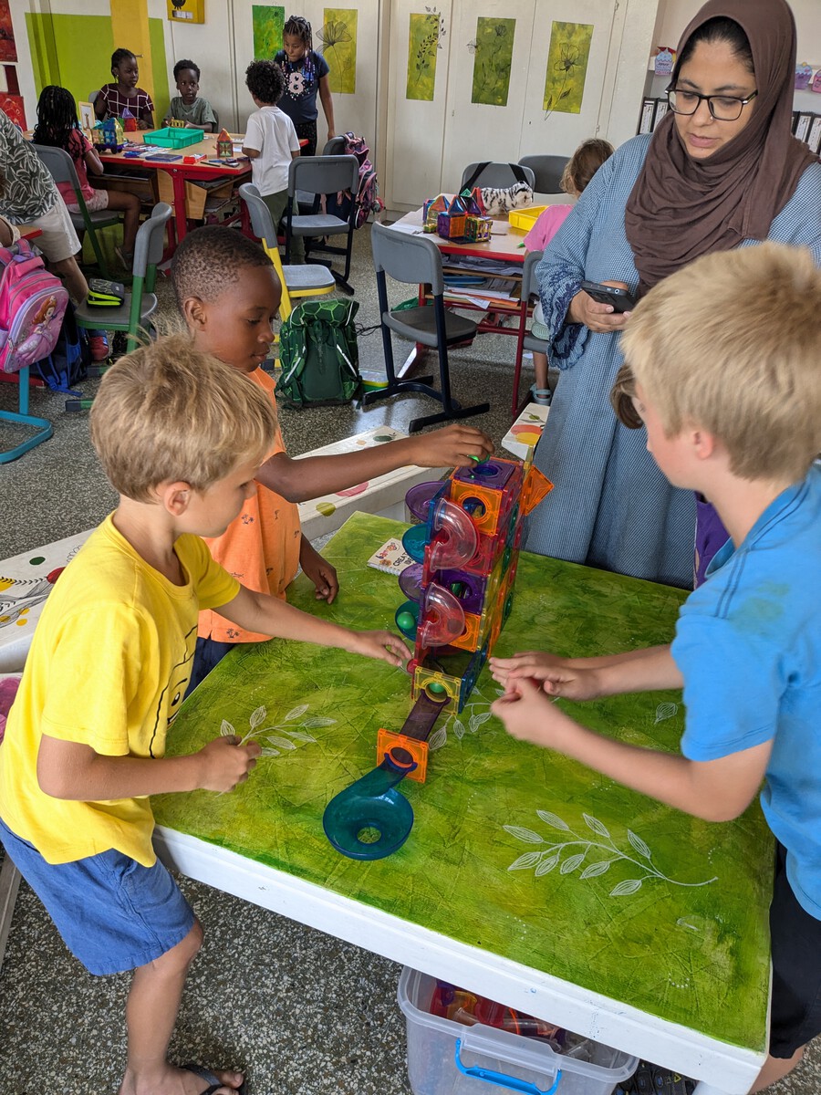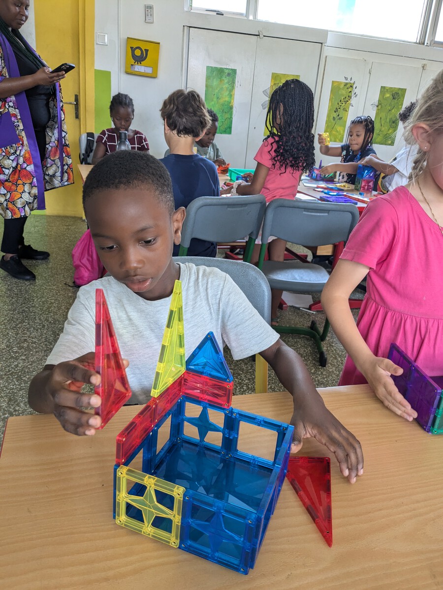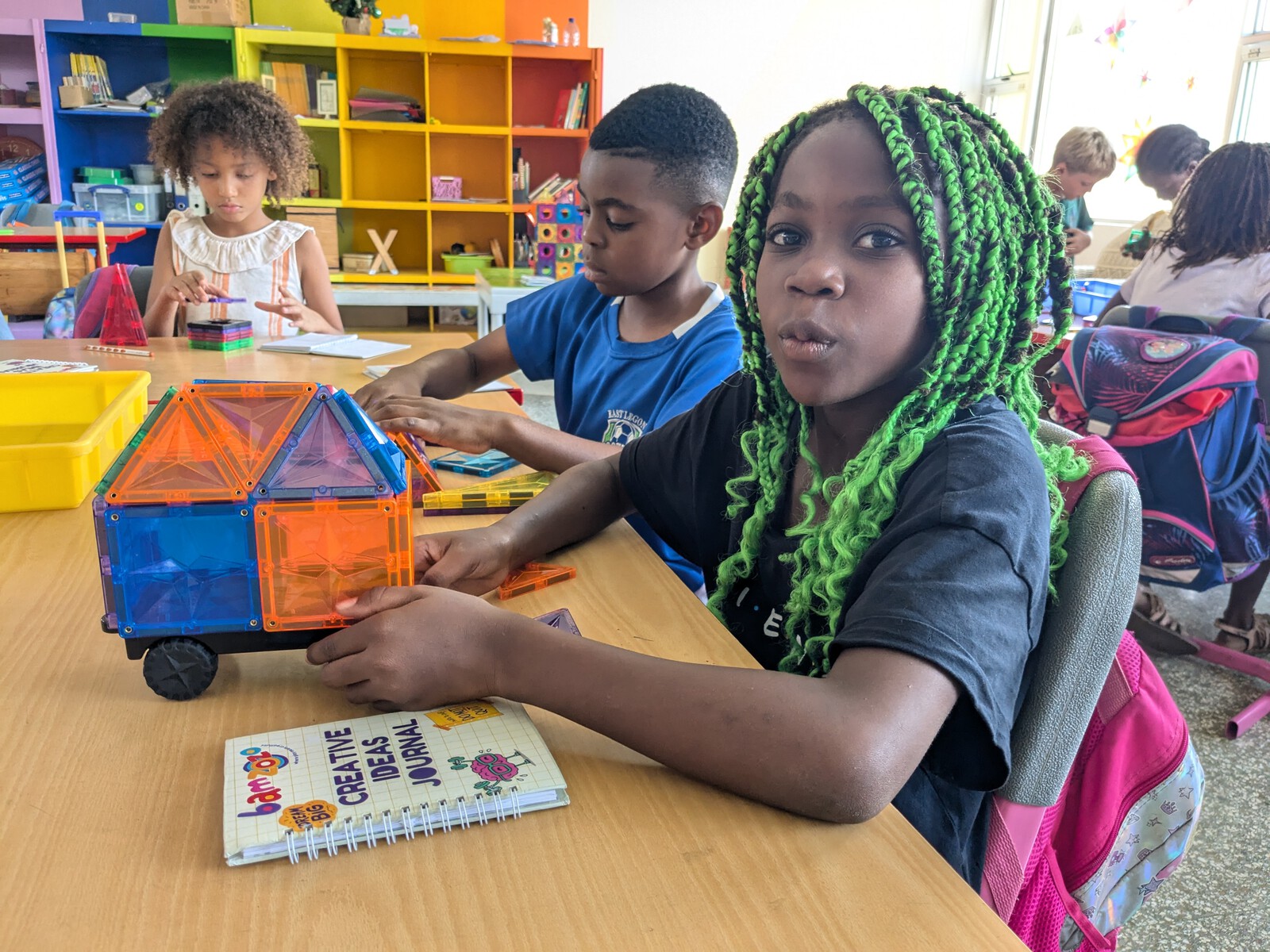 exploring the properties of geometric solids. Geometric solids were searched for and sorted in the school playground. To go with this, there was new geometric play material that we were able to try out in a workshop organised by bamzozo. We were given great tips on how to use the material. Creative writing also went really well again - we created some super exciting stories about vampires, bullies and chaotic children.