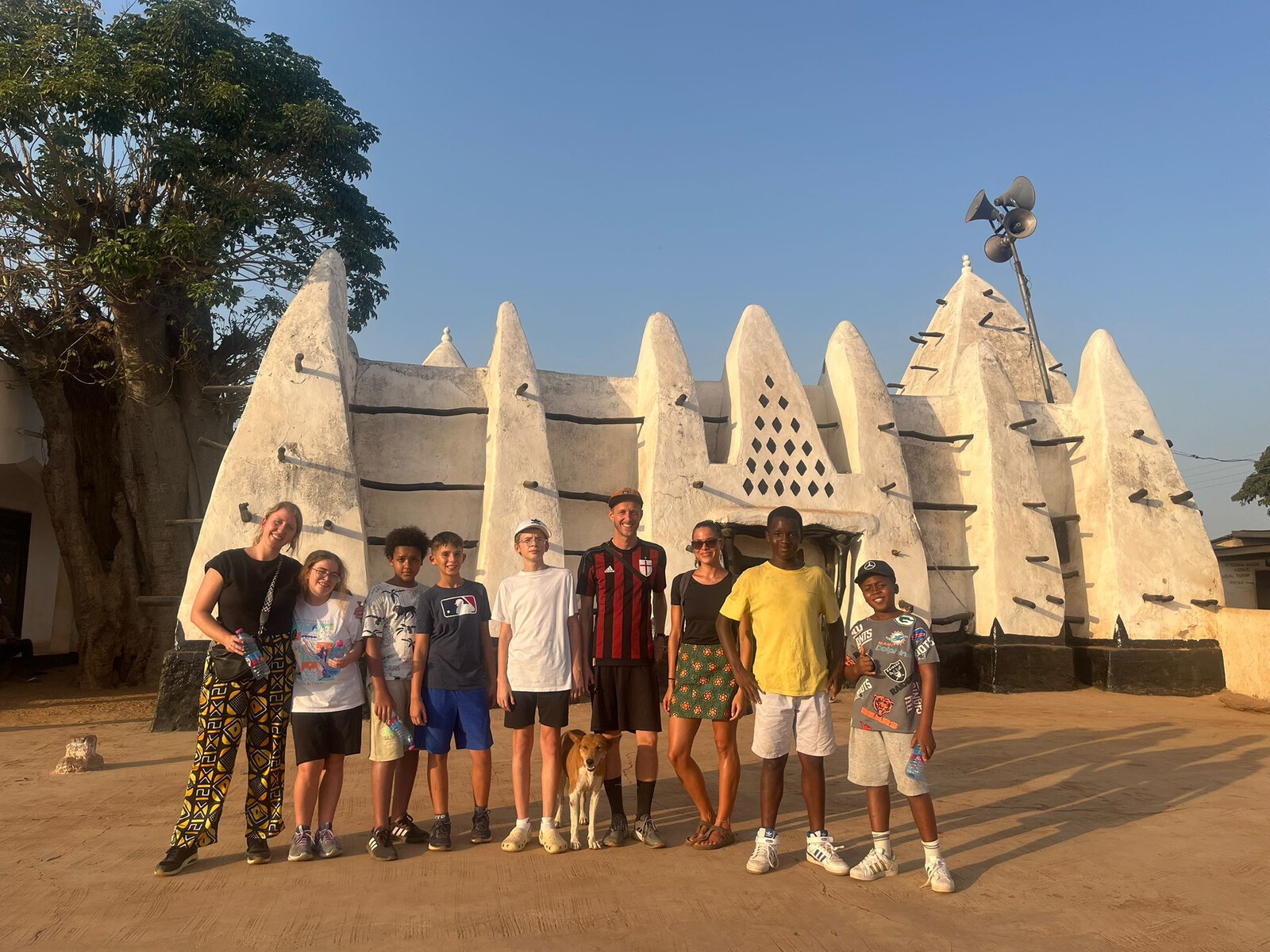 On Monday, we set off early for a two-hour morning safari. Although we saw antelopes, warthogs, monkeys and lots of birds, the much-anticipated encounter with an elephant did not materialise at first. After breakfast came the exciting news: an elephant had been spotted at the waterhole! Thrilled, we made our way back and observed the majestic giant at close quarters. In the afternoon, we visited the oldest mosque in West Africa in Larabanga and enjoyed a beautiful sunset on the way back.