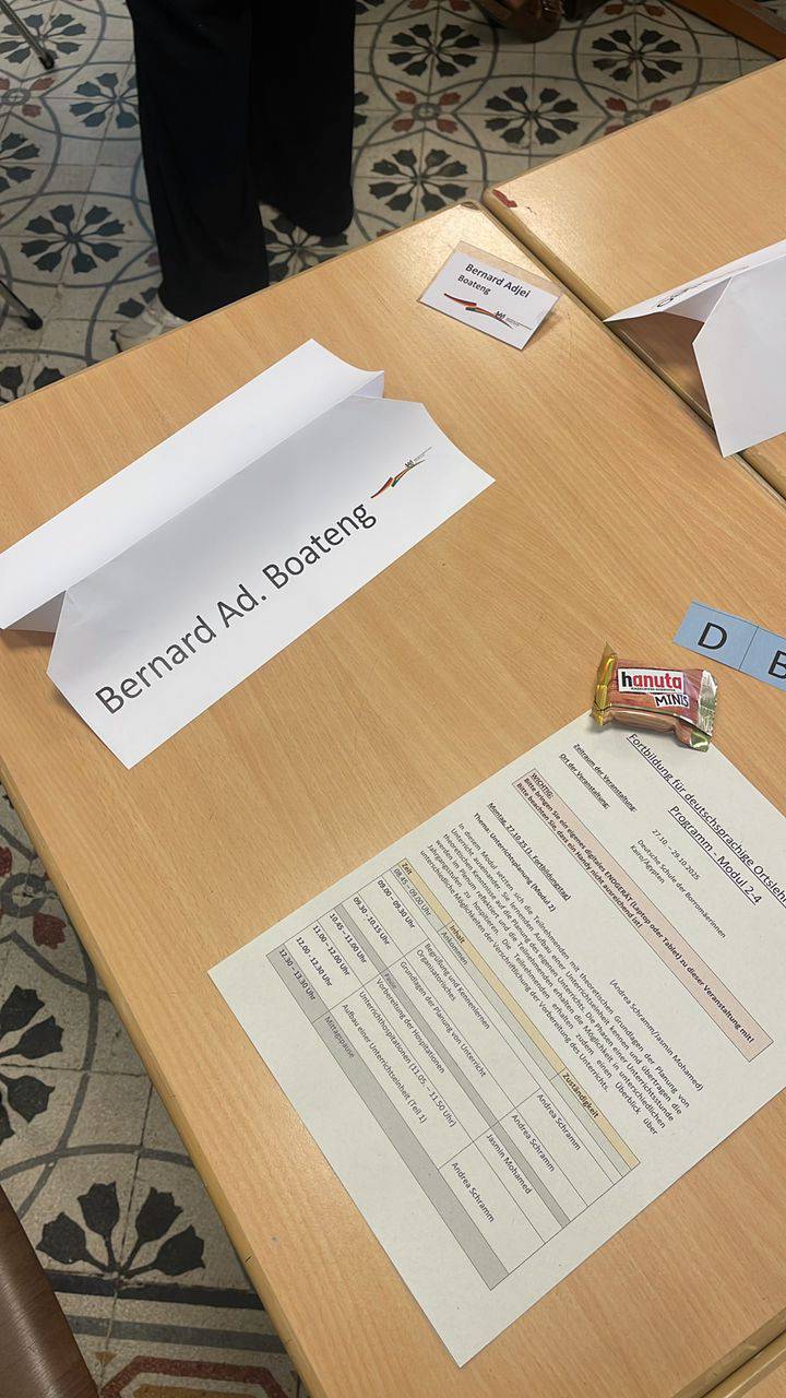 Our German as a Foreign Language teacher, Bernard Adjei Boateng π¬π, has safely arrived in Cairo and is taking part in the first on-site module of the training program for German-speaking local teachers (FOLK) at the German School of the Sisters of St. Borromeo (DSB).