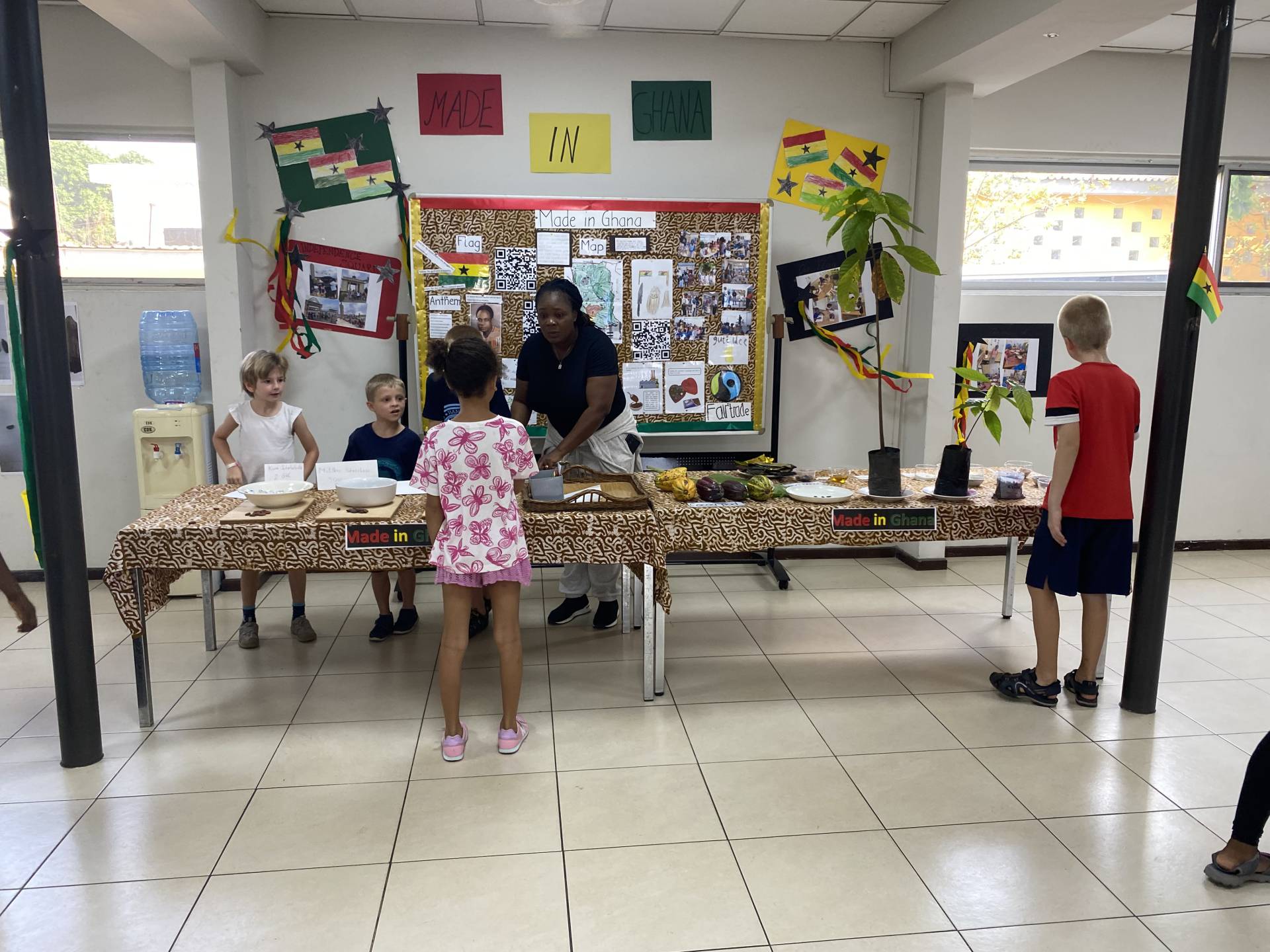 The "Made in Ghana" project week got off to a musical start in the crèche, with the children and teachers clapping, dancing and singing to the rhythms of the drum. In the kindergarten the week began with making and painting the Ghanaian flag. The whole school delved into the subject of Independence Day and Fairtrade, a good introduction for the activities that would follow the rest of the week.