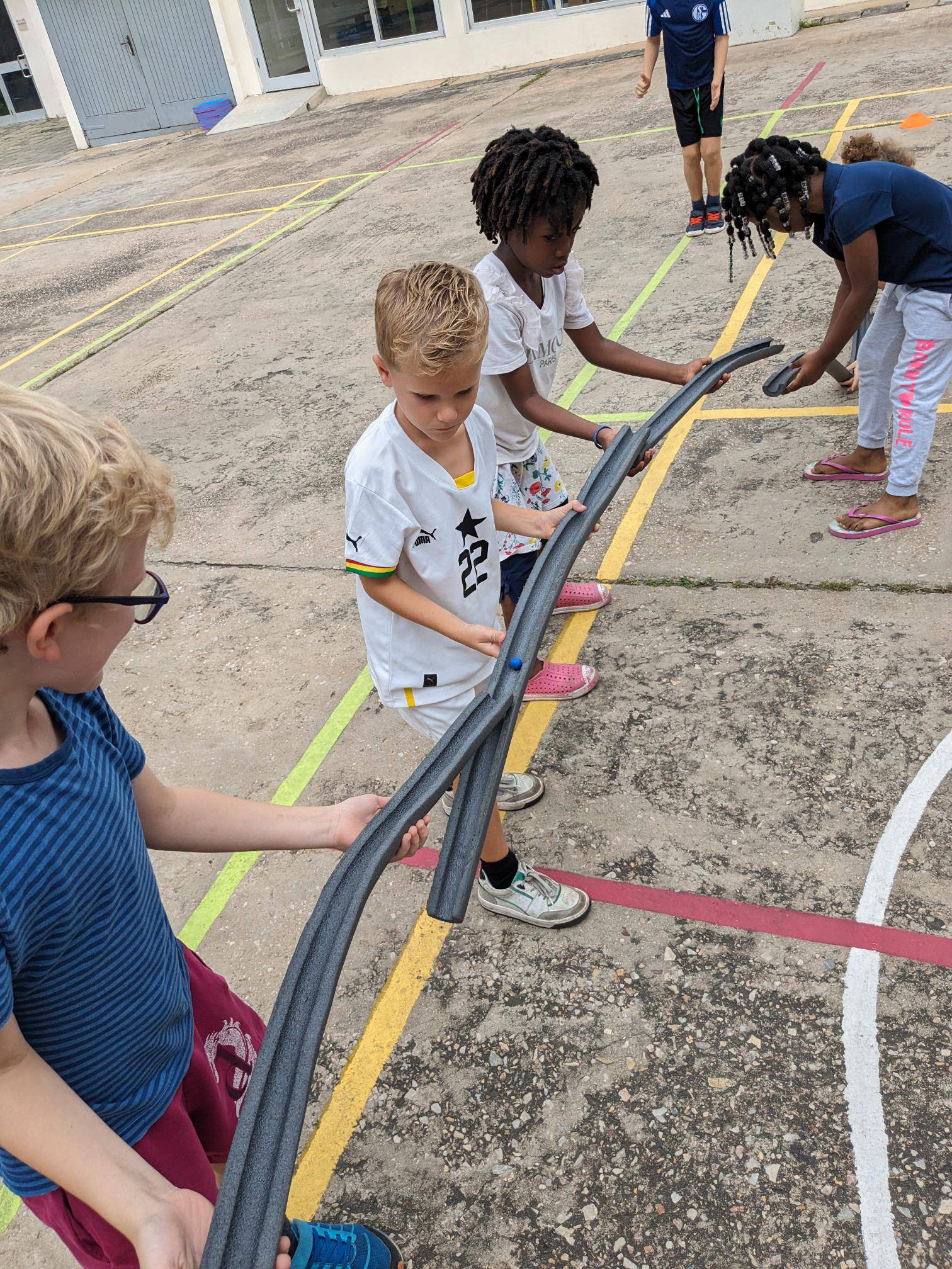 Football-In-Your-Life, which is supported by the German Bundesliga, paid a visit to the school with a team of coaches on 15 September 2023. Through cooperative games, the students were sensitized to what it is like to play football as a blind person or with another handicap. Relying solely on their hearing with a ball that has a rattle built into it was a completely new experience. But team spirit and communication with each other are also undoubtedly important success factors in a team sport.