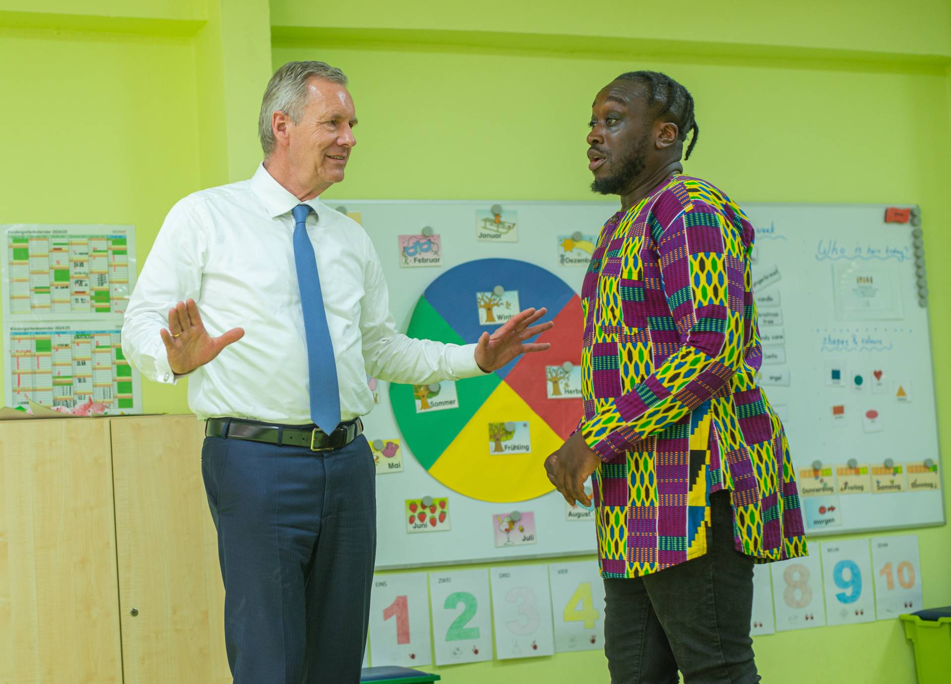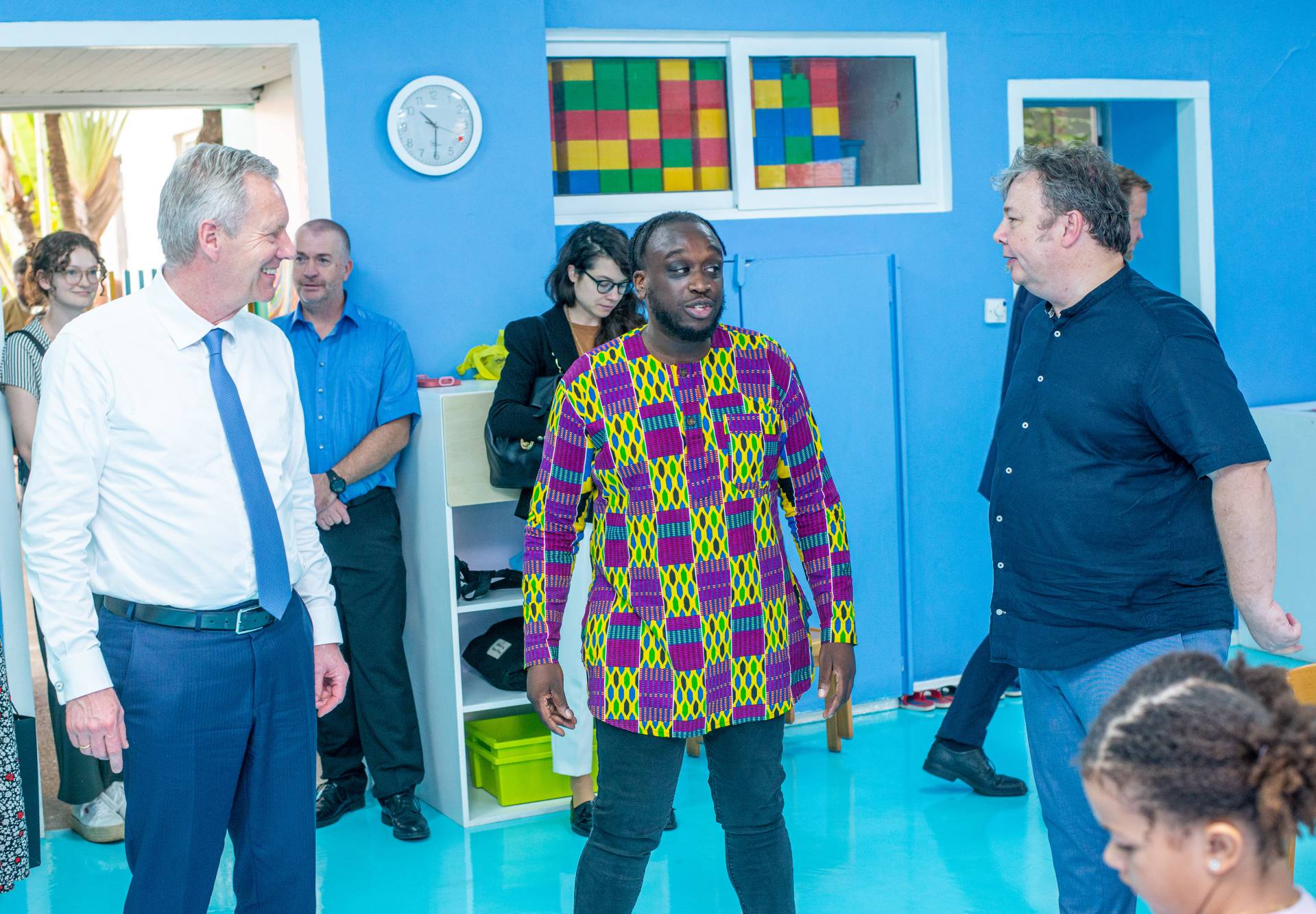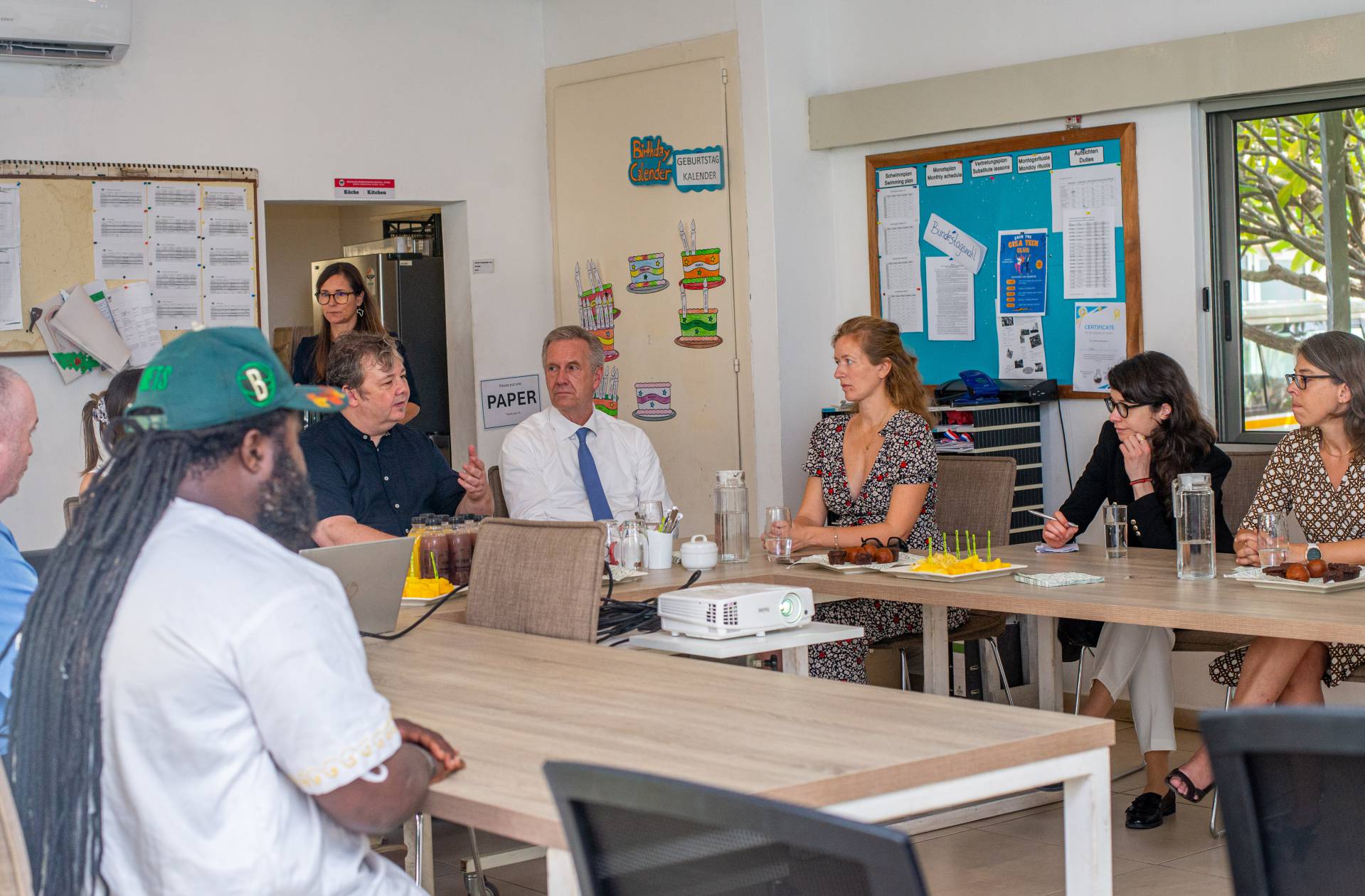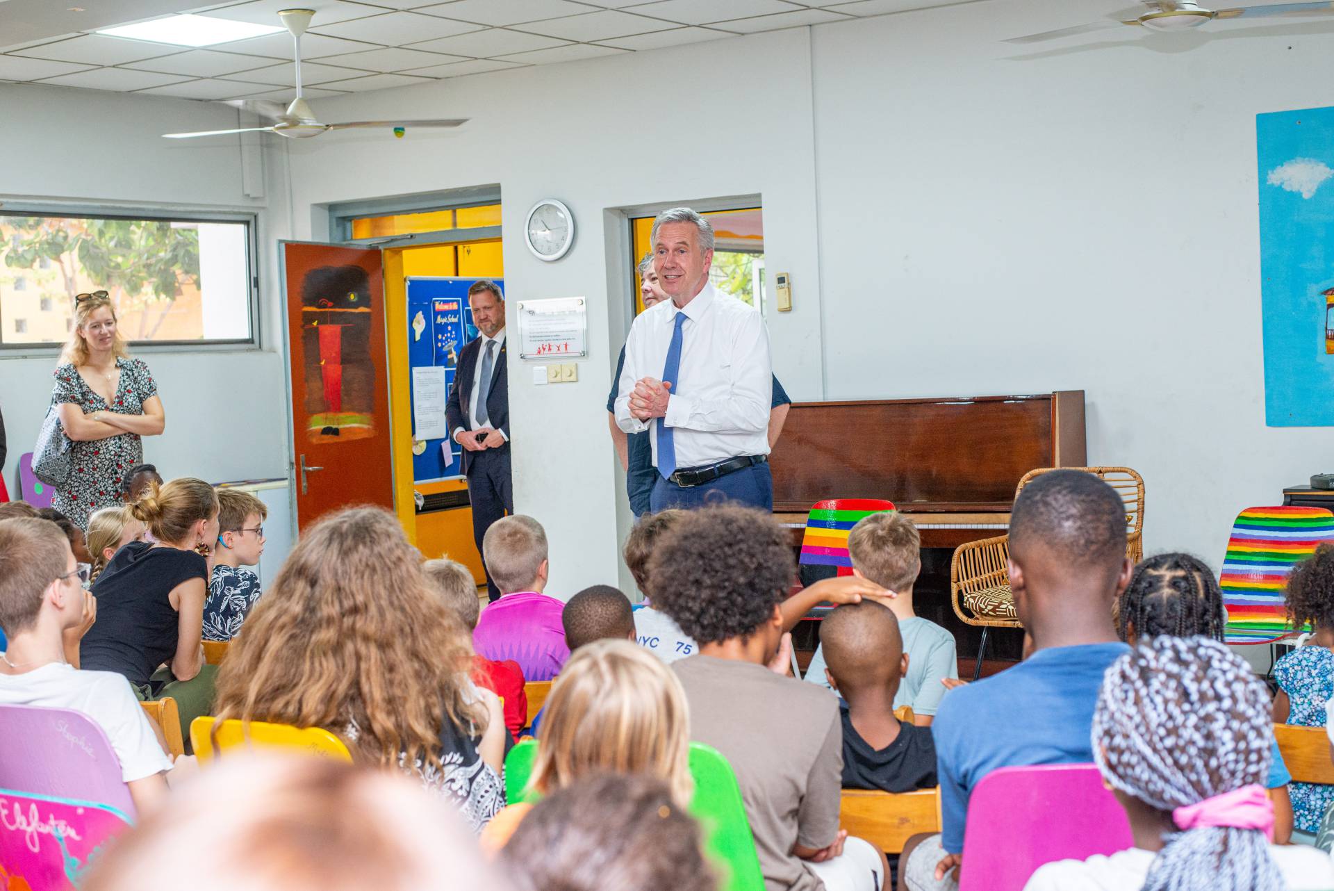 Wulff was welcomed by the artists of the Universal Wonderful Street Academy and was even persuaded to dance. In a round of talks with representatives of the school board, parents and embassy representatives, staff and the school management, the remarkable development of the school and the challenges ahead were discussed. Headmaster Rainer Kropp-Kurta was able to report on the significant increase in pupil numbers and the cooperation with NGOs, universities and educational institutions and the function of building bridges. Christian Wulff proved to be an attentive listener, and not just when it came to the situation regarding promotion as a German school abroad. He also gave interesting insights into his still very active fields of activity βoff dutyβ.