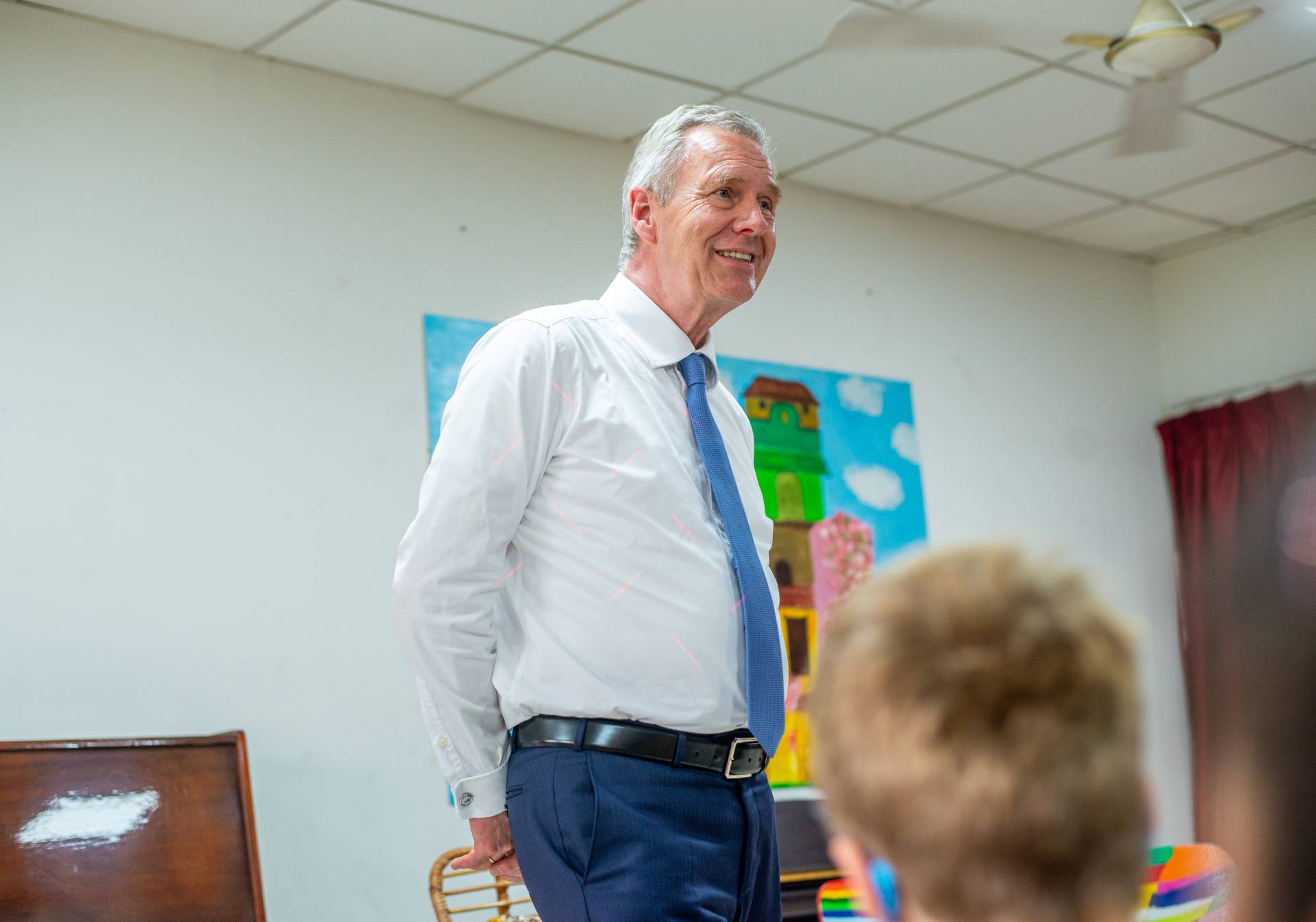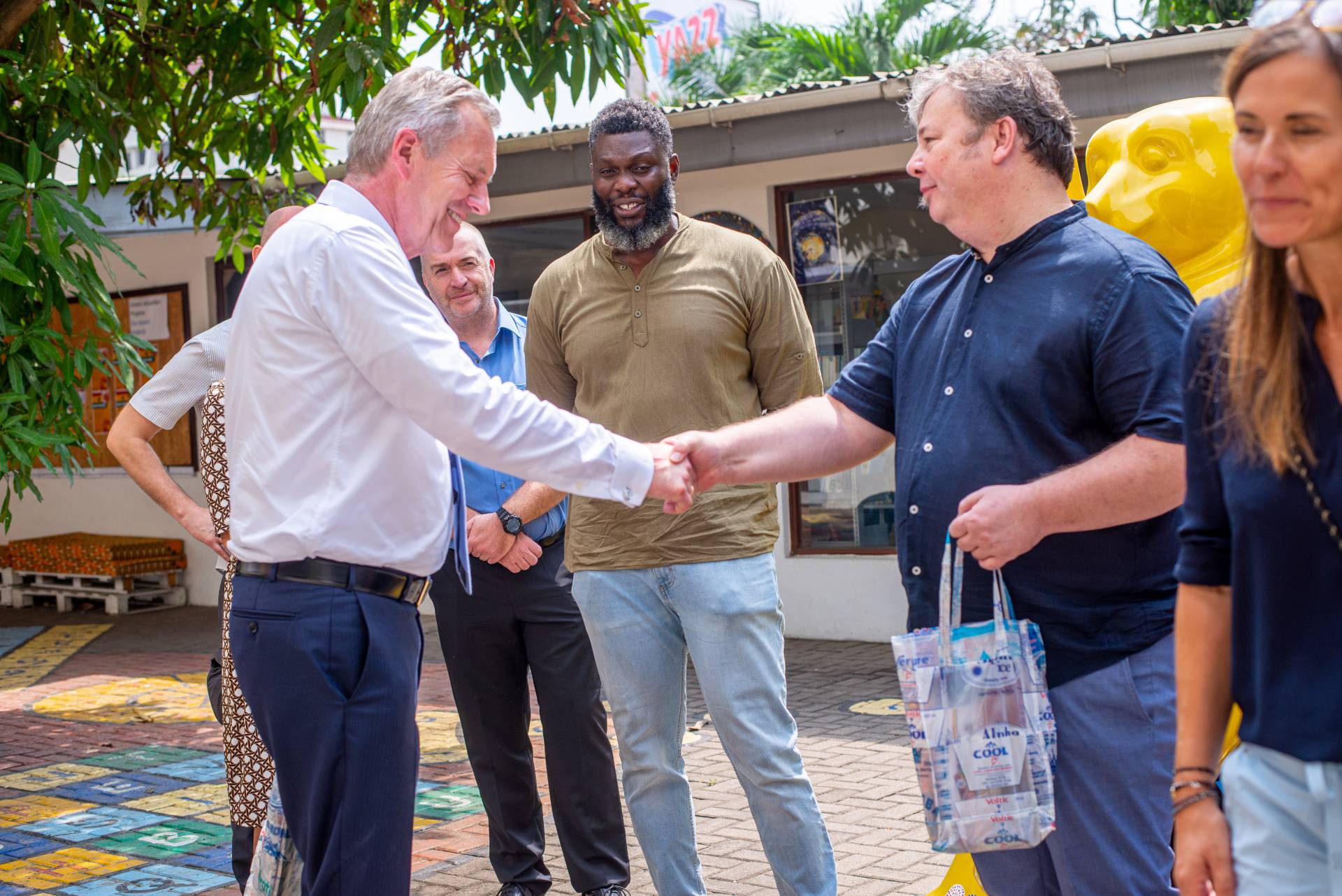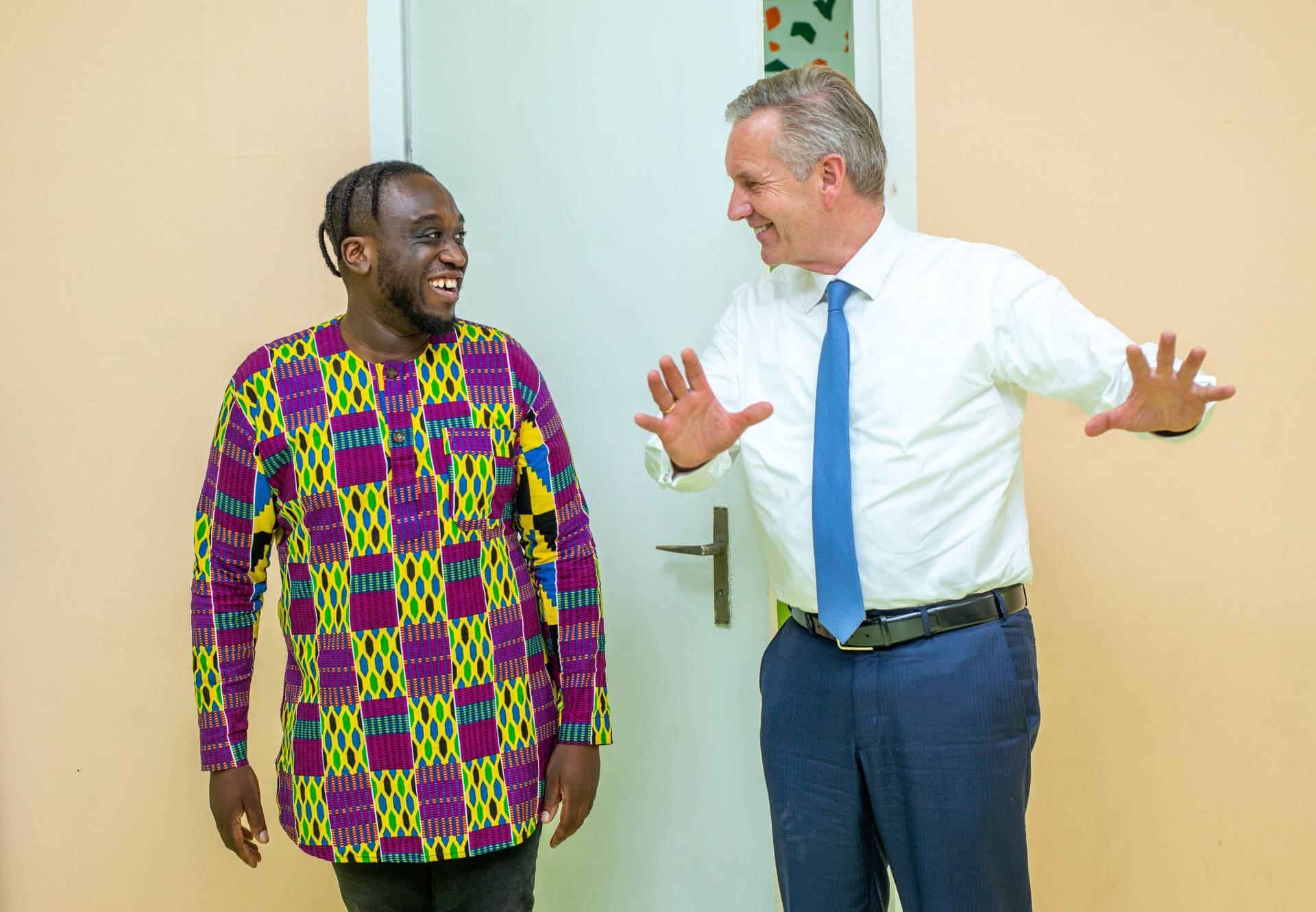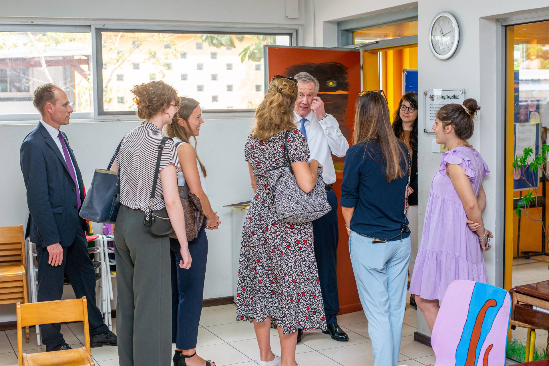 Wulff was welcomed by the artists of the Universal Wonderful Street Academy and was even persuaded to dance. In a round of talks with representatives of the school board, parents and embassy representatives, staff and the school management, the remarkable development of the school and the challenges ahead were discussed. Headmaster Rainer Kropp-Kurta was able to report on the significant increase in pupil numbers and the cooperation with NGOs, universities and educational institutions and the function of building bridges. Christian Wulff proved to be an attentive listener, and not just when it came to the situation regarding promotion as a German school abroad. He also gave interesting insights into his still very active fields of activity βoff dutyβ.
