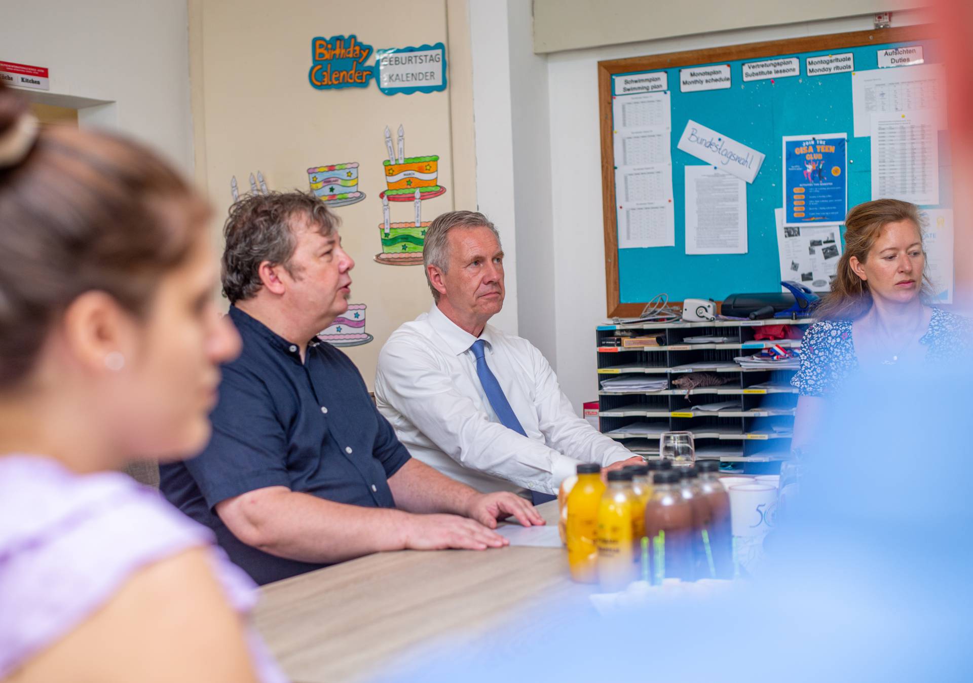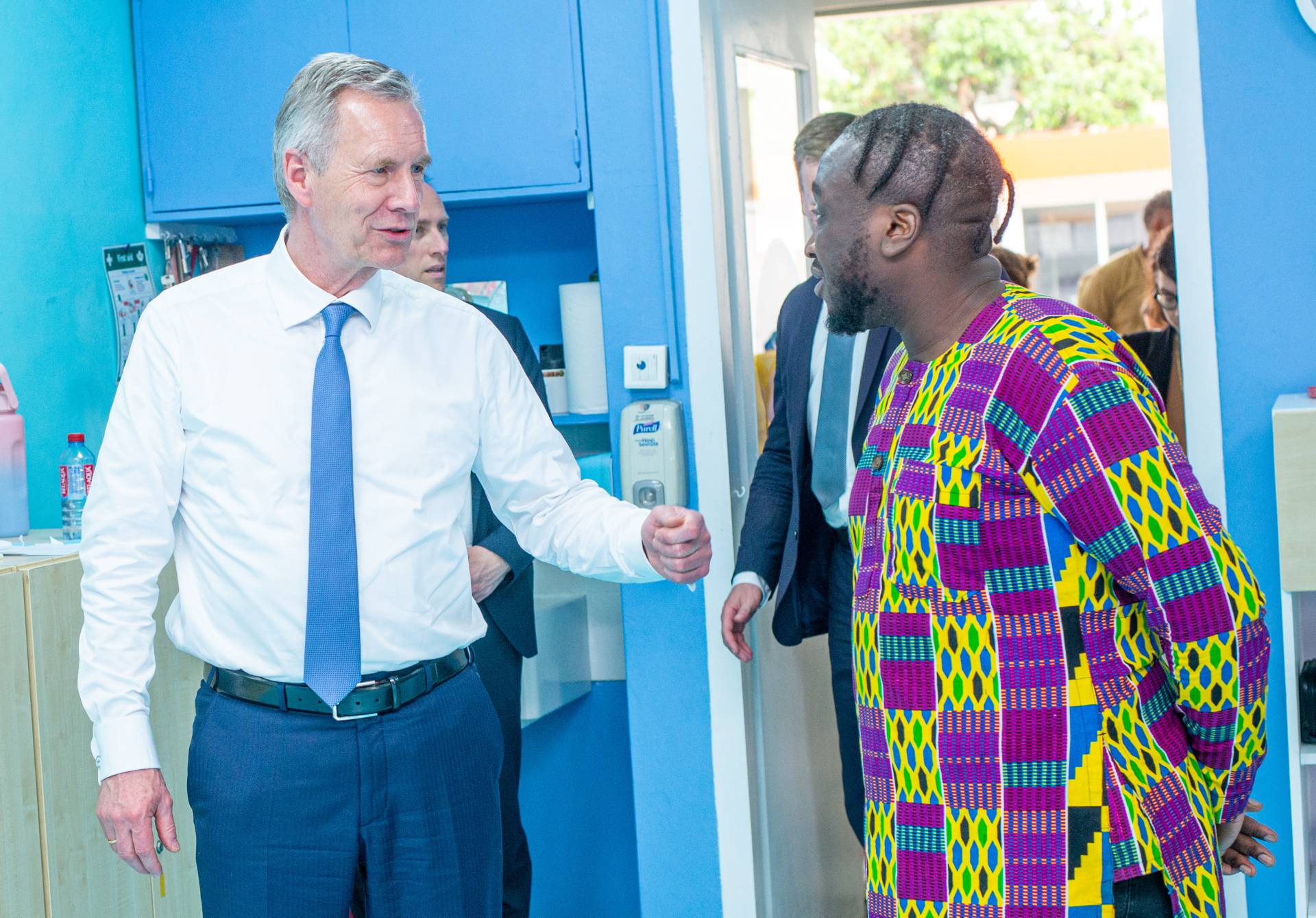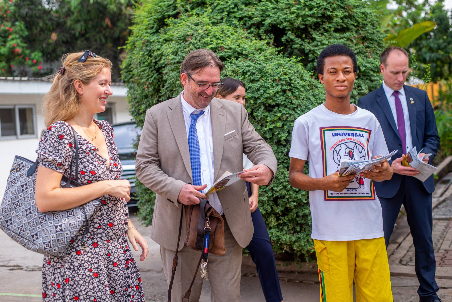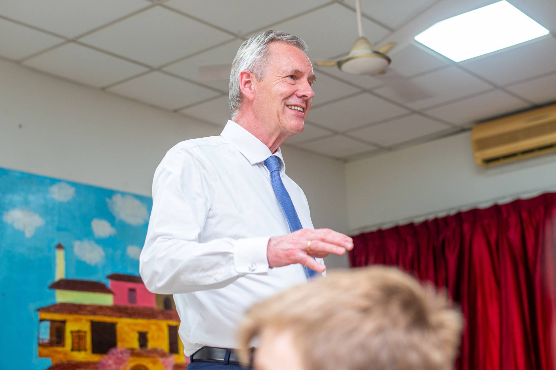 Wulff was welcomed by the artists of the Universal Wonderful Street Academy and was even persuaded to dance. In a round of talks with representatives of the school board, parents and embassy representatives, staff and the school management, the remarkable development of the school and the challenges ahead were discussed. Headmaster Rainer Kropp-Kurta was able to report on the significant increase in pupil numbers and the cooperation with NGOs, universities and educational institutions and the function of building bridges. Christian Wulff proved to be an attentive listener, and not just when it came to the situation regarding promotion as a German school abroad. He also gave interesting insights into his still very active fields of activity βoff dutyβ.