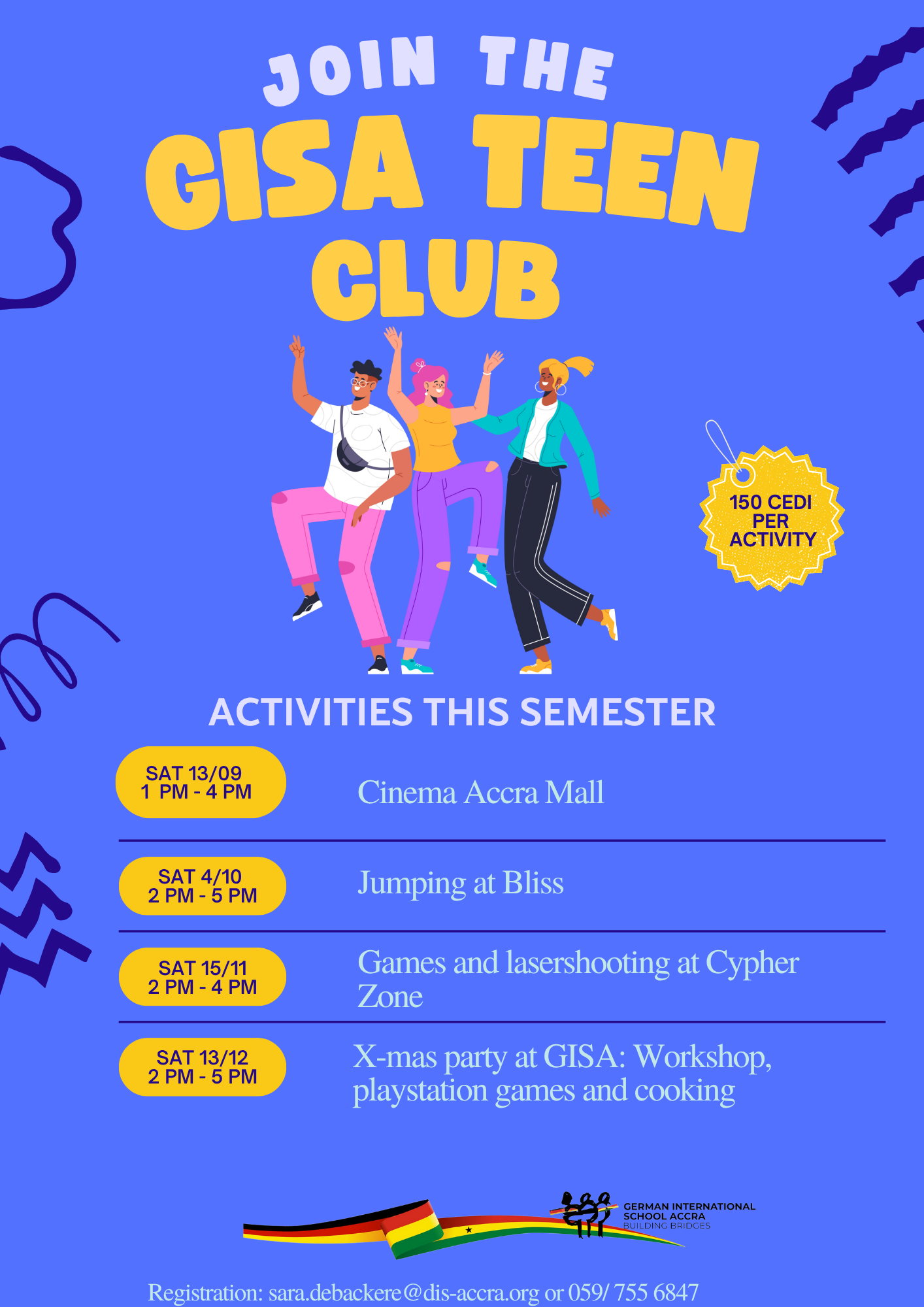 The excitement starts tomorrow with a movie night, and each month we’ll have a special highlight event – from trampolining and laser shooting at Blizz to our big Christmas party in December.