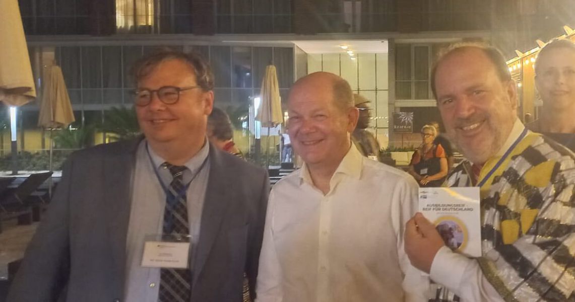The chairman of the school board Martin Wilde and headmaster Rainer Kropp-Kurta presented to Chancellor Olaf Scholz an innovative project to create access for Ghanaians to a dual training in Germany.
