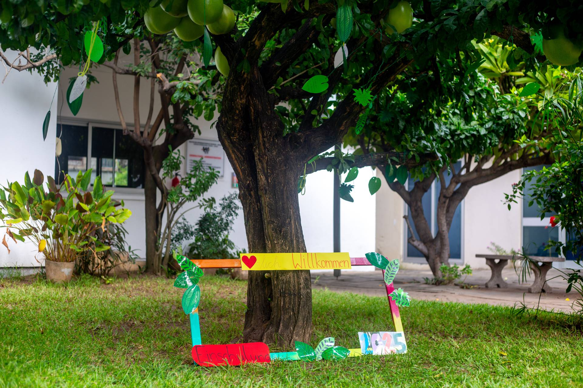 A very special highlight was the welcome for our new first graders, who came on stage together with their parents, received their school cones, and wrote down their personal wishes for the start of their school journey on a leaf card. All new students also received leaves, which were later attached to the Calabash Tree โ a colourful symbol of new beginnings, community, and growth.
