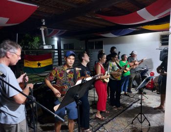Living room concert with “Ukes of Hazard” and “O'Brolenkpe”