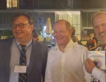 The chairman of the school board Martin Wilde and headmaster Rainer Kropp-Kurta presented to Chancellor Olaf Scholz an innovative project to create access for Ghanaians to a dual training in Germany.