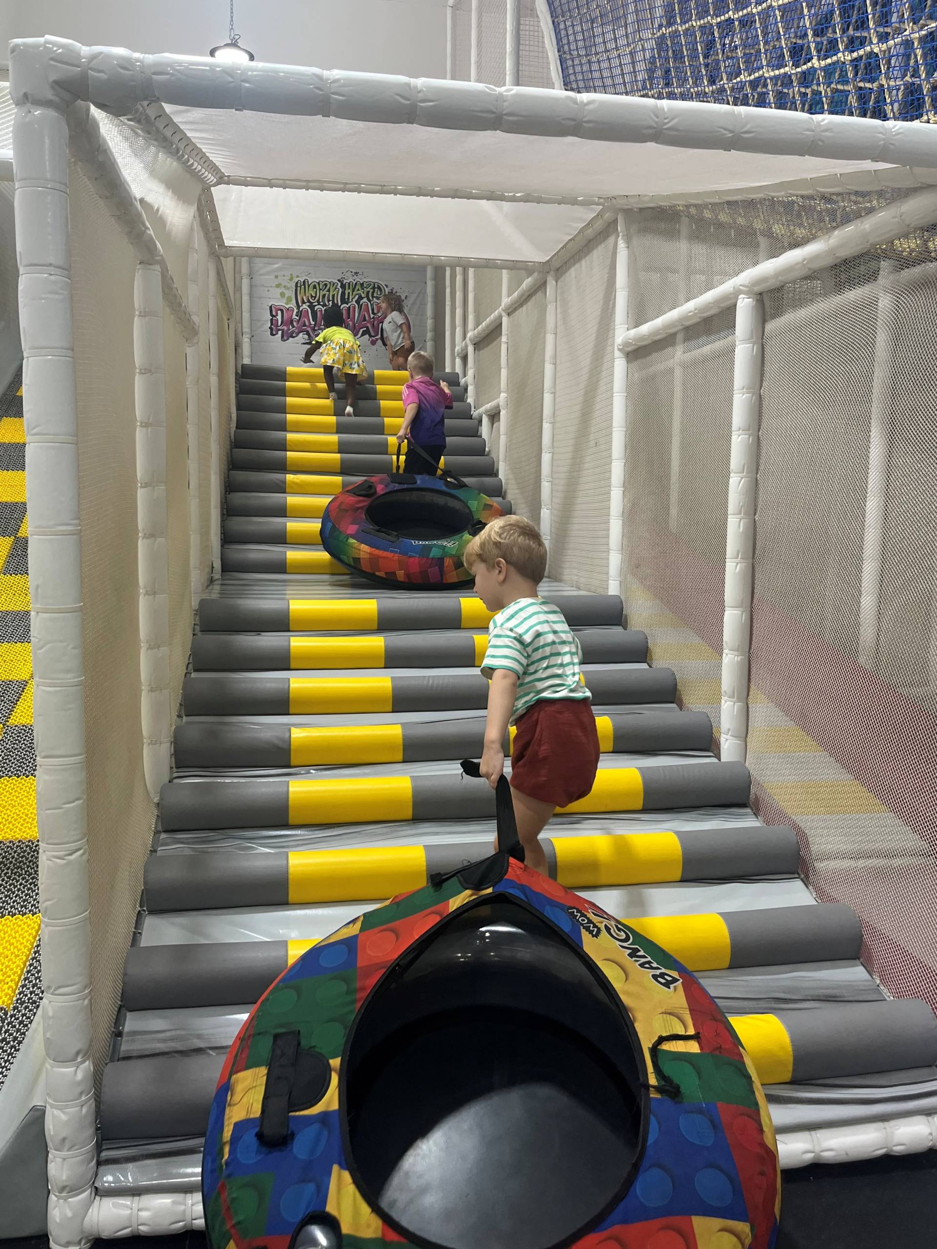 Once they arrived at the playground, the children were greeted by a wide range of play and exercise options. There was so much to discover and experience: various slides, a cable car, a ball pit, climbing frames, balancing stations and a trampoline. The children had a lot of fun and enjoyed being active and exploring the play areas.