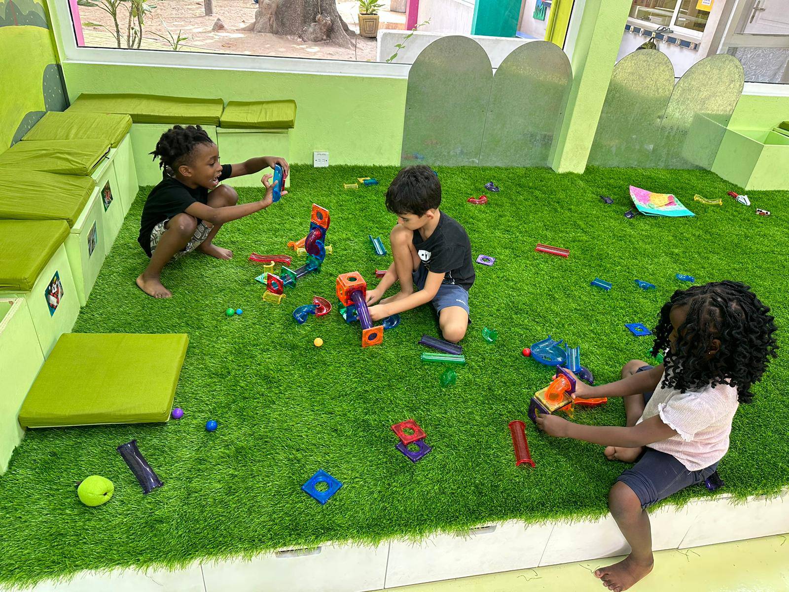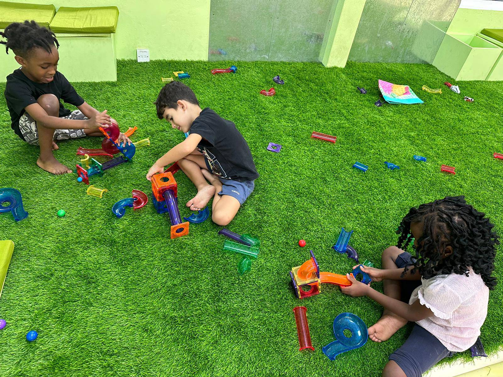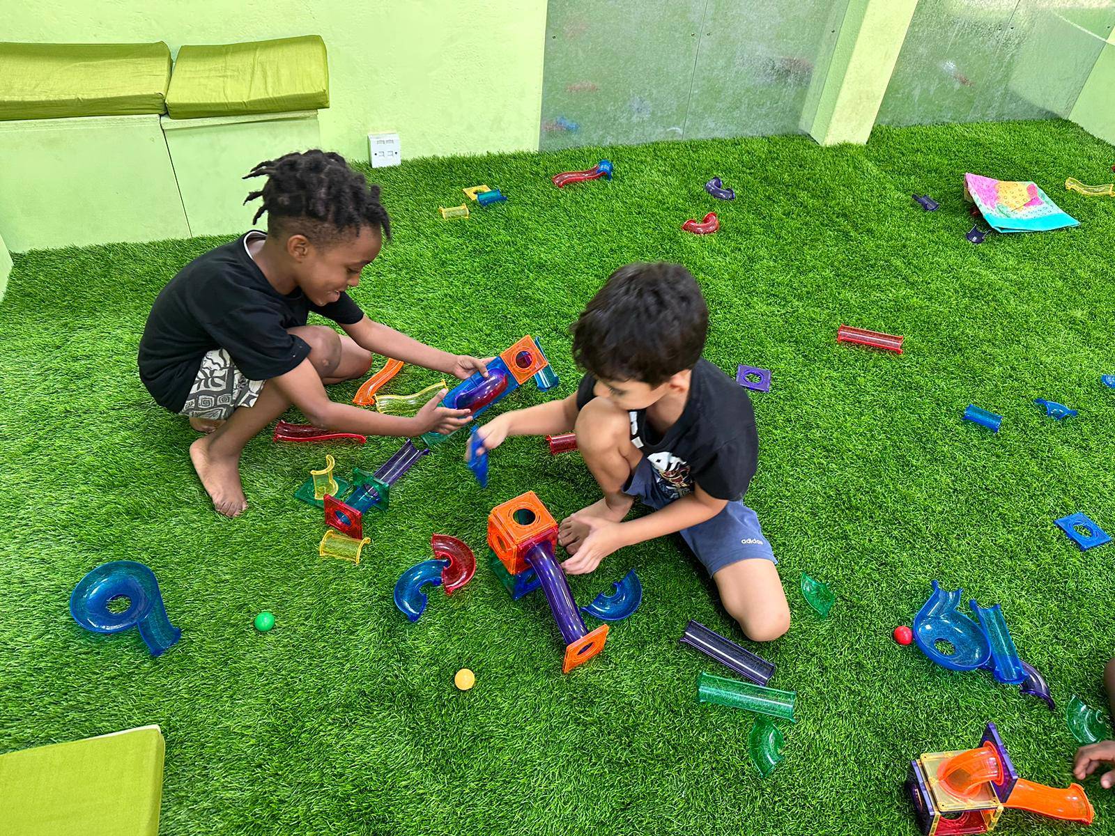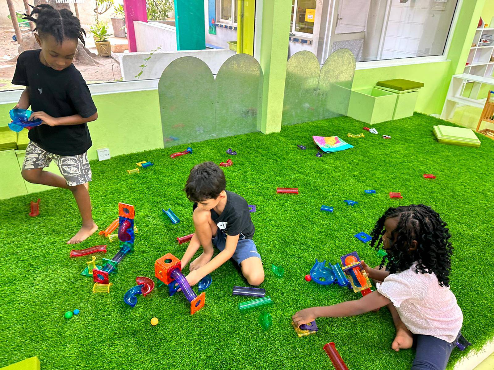 The highlight of the week in kindergarten was the new magnetic marble run. The toy promotes problem-solving skills, hand-eye coordination and trains fine motor skills. The children put the pieces together using the laws of physics, gravity, the brain, imagination and strong magnetism. This marble toy can be put together and easily taken apart. The children showed a lot of patience, creativity and joy when playing with the marble run.