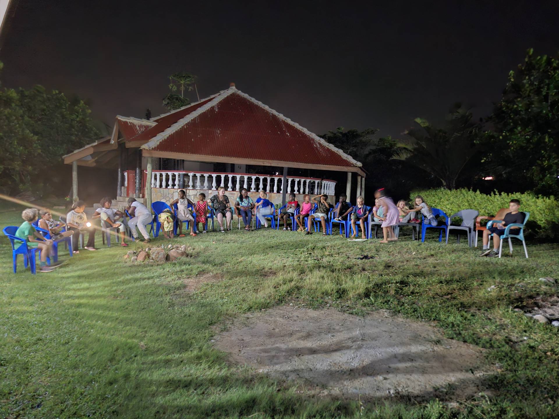 After dinner, we saw a campfire made of big sticks and because it wasn't on yet, we told each other stories and danced. Later we were able to make marshmallows on the fire.