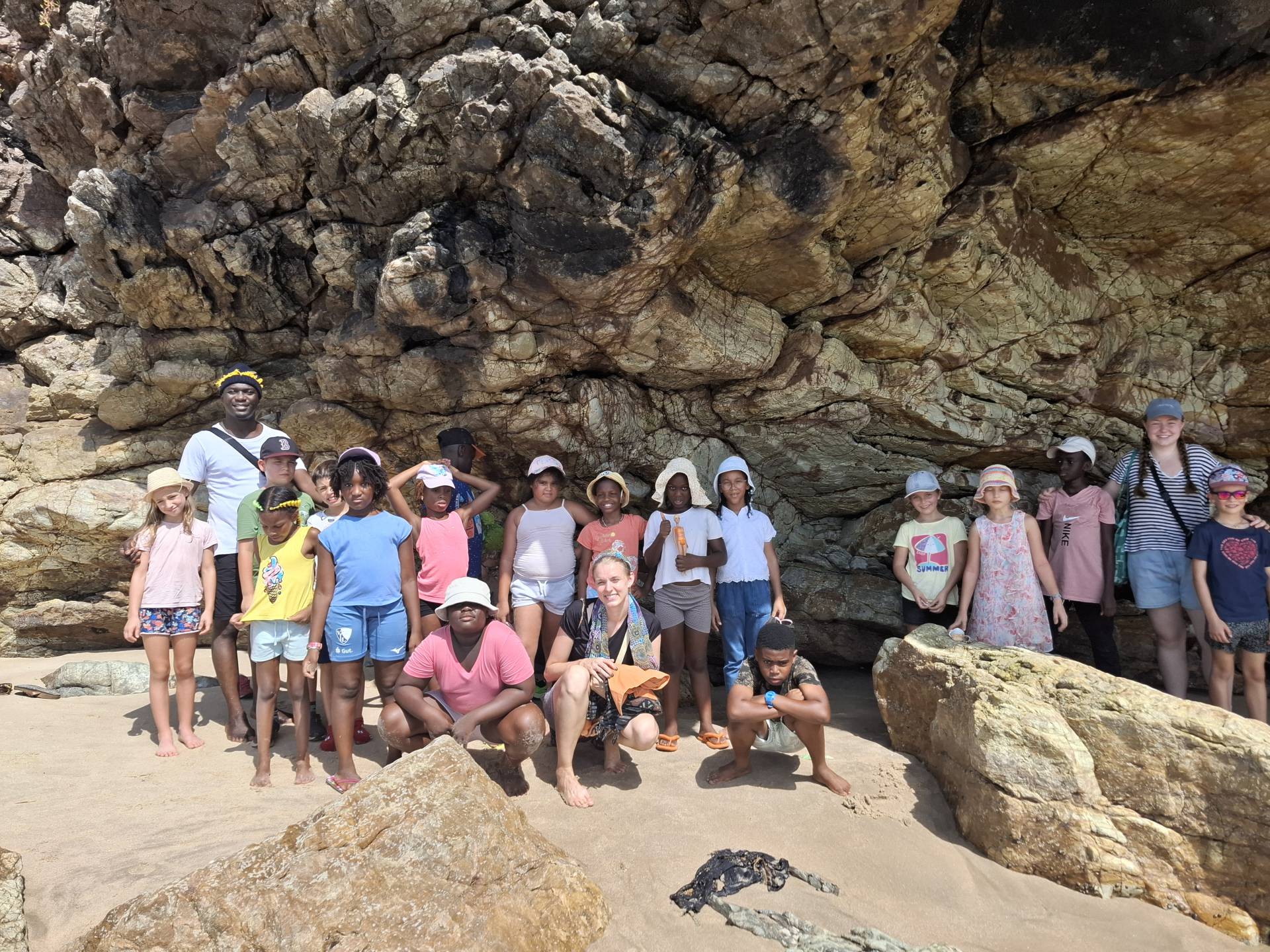 We went to the beach and collected shells and walked past โholy waterโ. We had to take off our shoes to do this. Then we played by the water and saw crabs and helped pull out the fishing net.