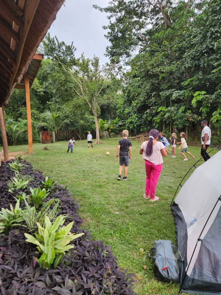 Once all the tents were up, there was still plenty of time for football, skipping ropes, and card games. Afterwards, we gave our tents creative names, designed our own flags, and invented secret access codes – lots of fun and great team spirit!
