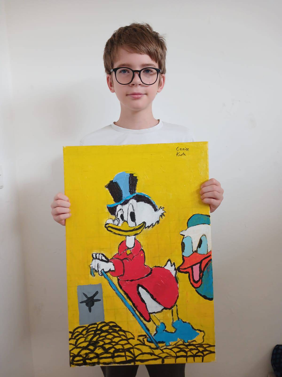 Year 5/6 students completed a major art project. They had transferred small templates of their comic heroes onto canvases using upscaled squares and then brought them to life with acrylic paints.