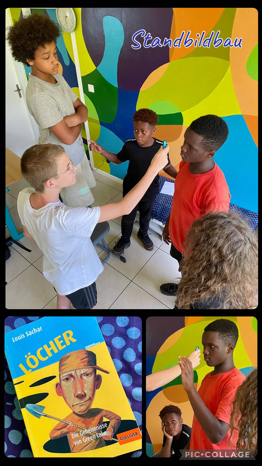 Our seventh graders are currently reading the young adult novel βHolesβ and learned about freeze frame construction this week. Freeze-framing is a creative method in literature lessons in which pupils present a scene from a literary text as a βliving freeze-frameβ using body language and facial expressions. In doing so, they freeze in a certain pose in order to make the central conflicts, emotions or relationships of the characters visible.