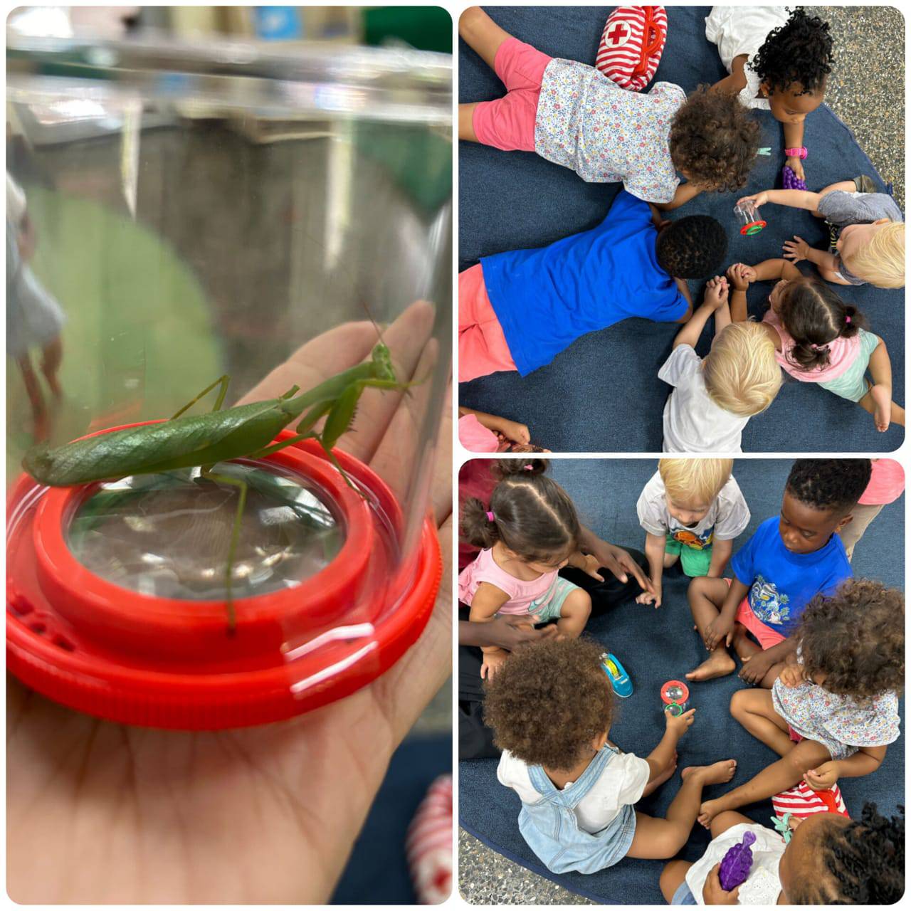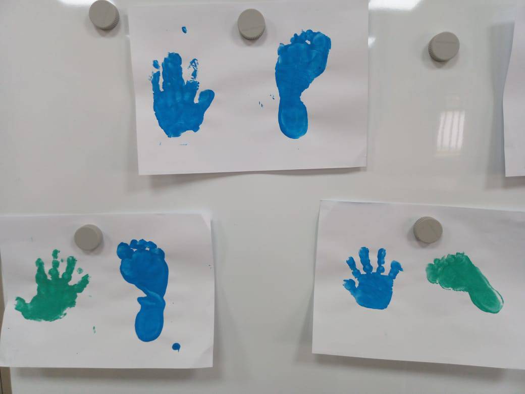 In dieser Woche haben wir mit unserem neuen Thema Körper begonnen. Zu Beginn haben wir uns gedehnt und unseren Körper genau betrachtet. Wir haben tolle Fuß- und Handabdrücke gemacht. Und festgestellt, was wir alles in unserem Gesicht haben! Wir haben auch das Lied ‚Über mich‘ und ‚Kopf, Schultern, Knie und Fuß’ gesungen. Am Donnerstag hatten wir dann noch eine Gottesanbeterin bei uns auf der Terrasse gefunden! Die mussten wir uns natürlich genauer ansehen!
