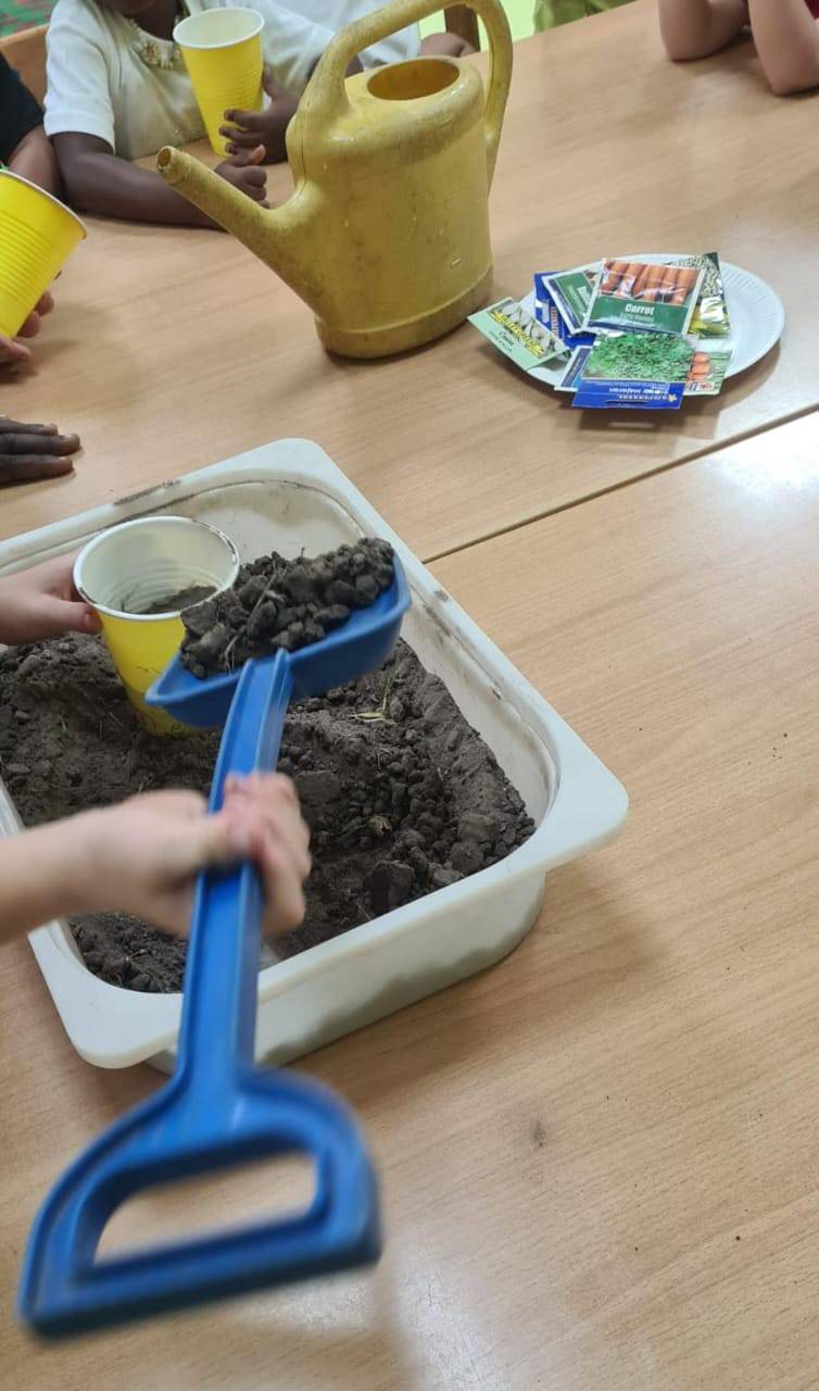 In der vergangenen Woche haben wir im Kindergarten gelernt, welche Obst- und Gemüse Sorten auf einem Bauernhof angepflanzt werden. Die Kinder haben verschiedene Samen von Karotten, Gurken, Tomaten und Sonnenblumen eingepflanzt. Wir sind gespannt wie lange es dauert, bis aus den Samen, Pflanzen sprießen werden. Um möglichst viele gesunde Pflanzen zu erhalten, werden die Kinder die eingepflanzten Samen regelmäßig gießen und auch beobachten, ob sie genug Sonnenlicht bekommen.
