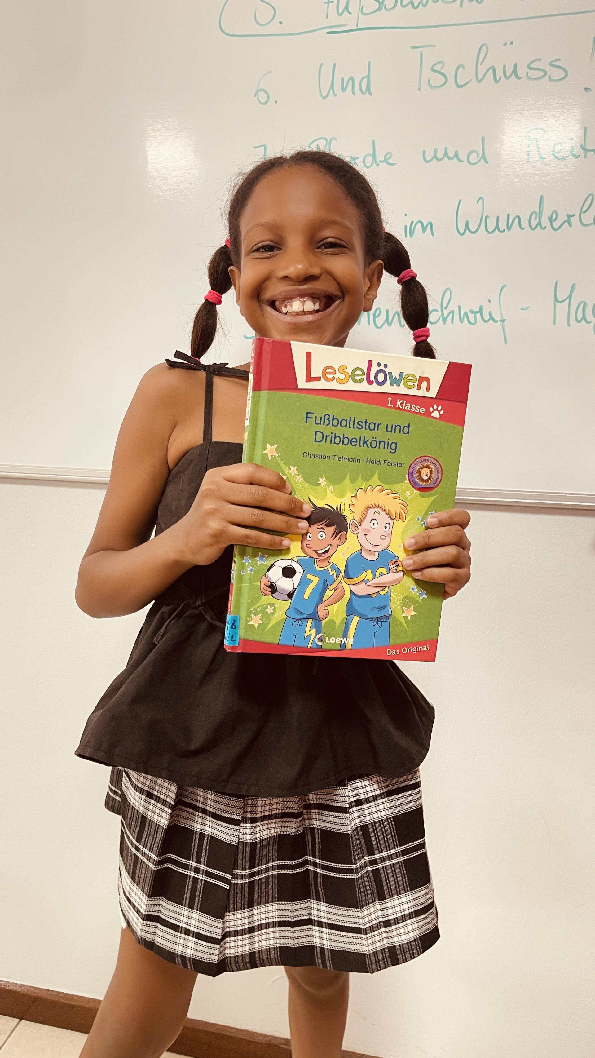 Die DaF-Schülerinnen und Schüler der Klassen 5/6 haben ihr „Buch des Monats“ gewählt! Nach Recherche und Präsentationen in der Bibliothek stand der Sieger fest: Fußballstar und Dribbelkönig. Vorgestellt von Philip, begeisterte das Buch nicht nur mit spannenden Fußballmomenten, sondern auch mit einer Geschichte über Freundschaft und große Träume.