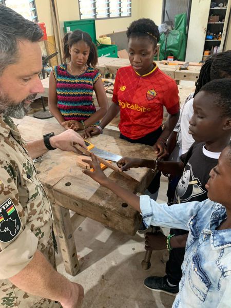 Für neun Schülerinnen und Schüler des Projekts Holzwerkstatt ging es in die Werkstatt des Militärs. Wir fuhren mit dem Bus dorthin. Da wir lange im Stau standen, blieb uns vor Ort etwas weniger Zeit.