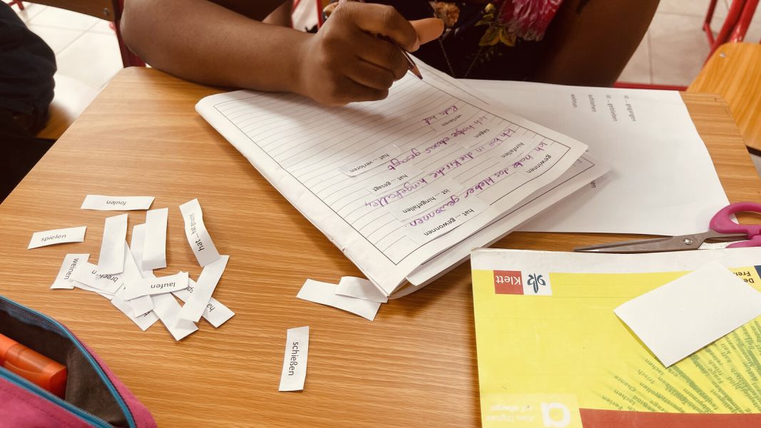 Die DaF-Schülerinnen und Schüler der Klasse 7/8 zeigten in dieser Woche, dass sie die deutsche Grammatik bereits sehr gut beherrschen. Die Aufgabe „Das perfekte Paar" fiel ihnen entsprechend leicht: Sie sollten von einem ungebeugten Verb das passende Pendant im Perfekt finden und anschließend einen passenden Satz dazu formulieren und aufschreiben.