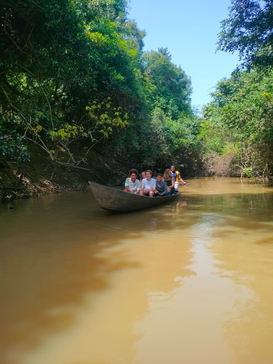 Morgens haben wir zuerst eine kleine Kanutour unternommen, bei der wir viele Vögel gesehen haben. Danach ging es ins Mognori Dorf, wo ein Medizinmann und traditionelle Heilpflanzen zeigte und wir lernten, wie Sheabutter hergestellt wird. Am Nachmittag machten wir eine walking Safari, bei der wir 2 Krokodile sichteten.