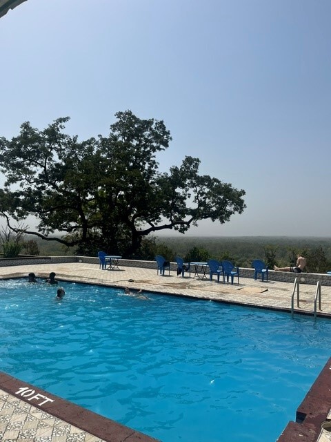 Pool Tag und Nachtsafari. Nach einem entspannten Frühstück aus Eiern und Pancakes ging es ins Mole Motel, wo wir den Ausblick über den Park und das Wasserloch genossen und schwimmen gingen. Abends wartete eine Nachtsafari auf uns, bei der wir sogar 2 Hyänen entdeckten.