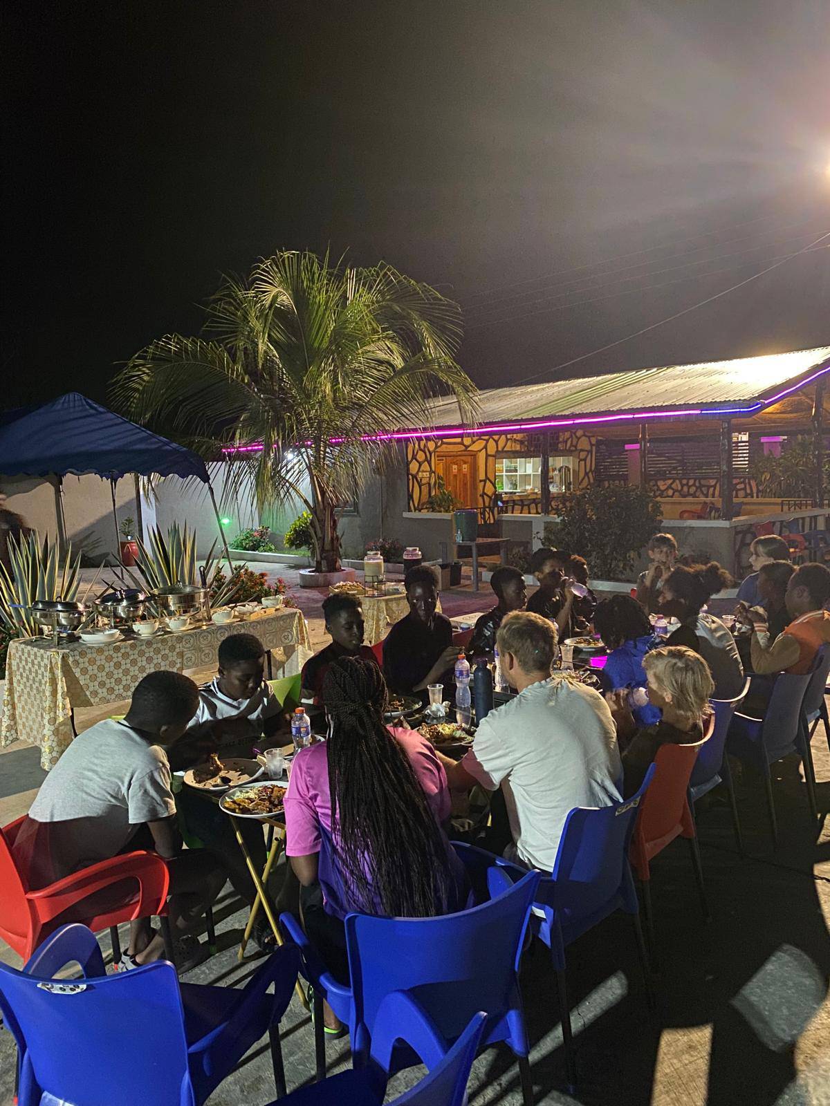 Nach der Wanderung gab es ein leckeres Mittagessen mit Jollof, Waakye und Hähnchen – und wir durften sogar frischen Kakao probieren. Während einige von uns noch auf ihre Mitschüler warteten, nutzten die Jungs, die bereits zurück waren, die Zeit für ein Fußballspiel. Zurück in der Lodge ruhten wir uns erst einmal aus, bevor wir mit unseren Lehrkräften Gesellschaftsspiele wie Uno, Dobble und Poker spielten.